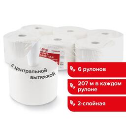 Бумага туалетная с центральной вытяжкой 207 м, LAIMA (Система T8) PREMIUM, 2-слойная, белая, КОМПЛЕКТ 6 рулонов, 112514 (112514)