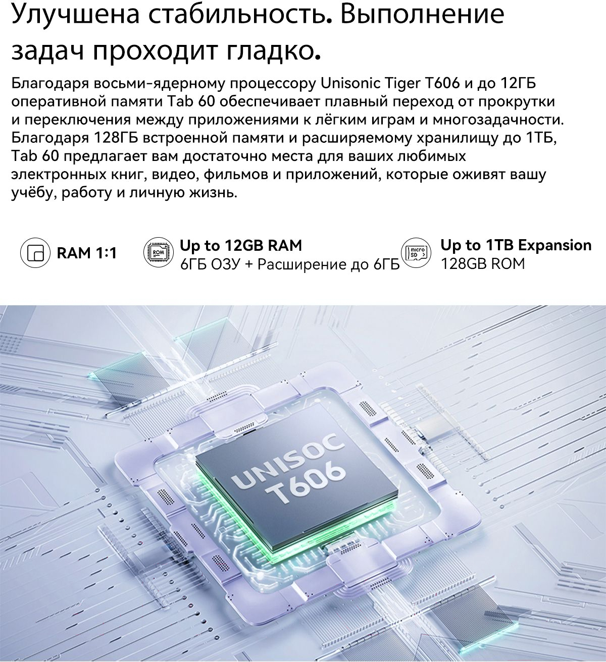 • Процессор Unisoc Tiger T606 (UMS9230 )