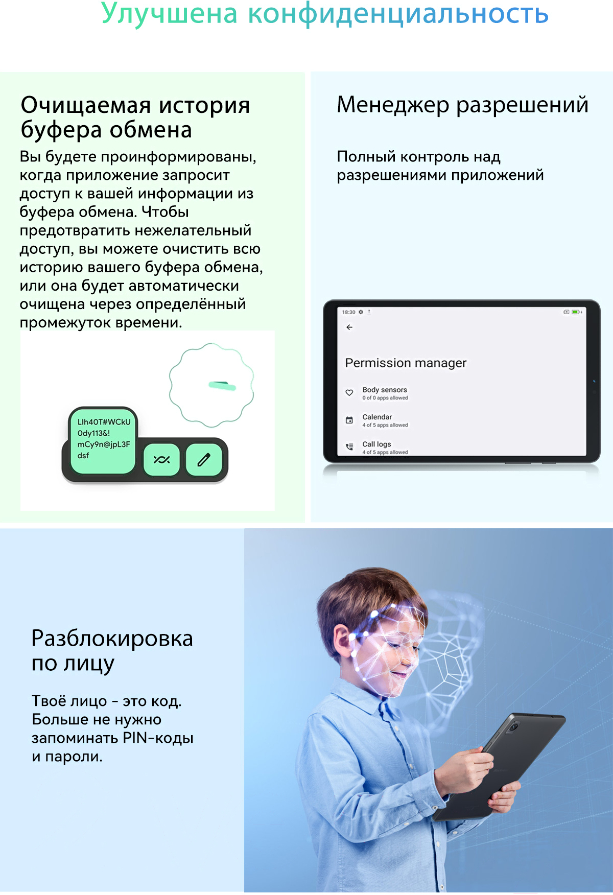 • Поддержка карт памяти microSD, microSDHC, microSDXC