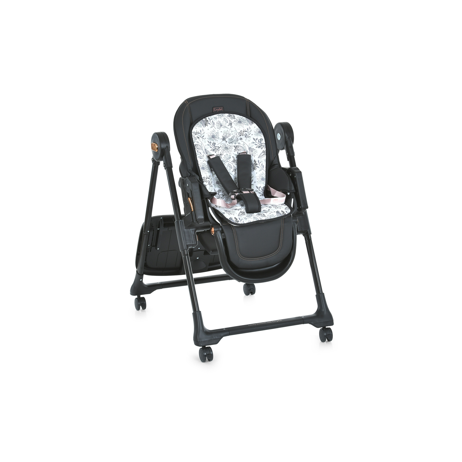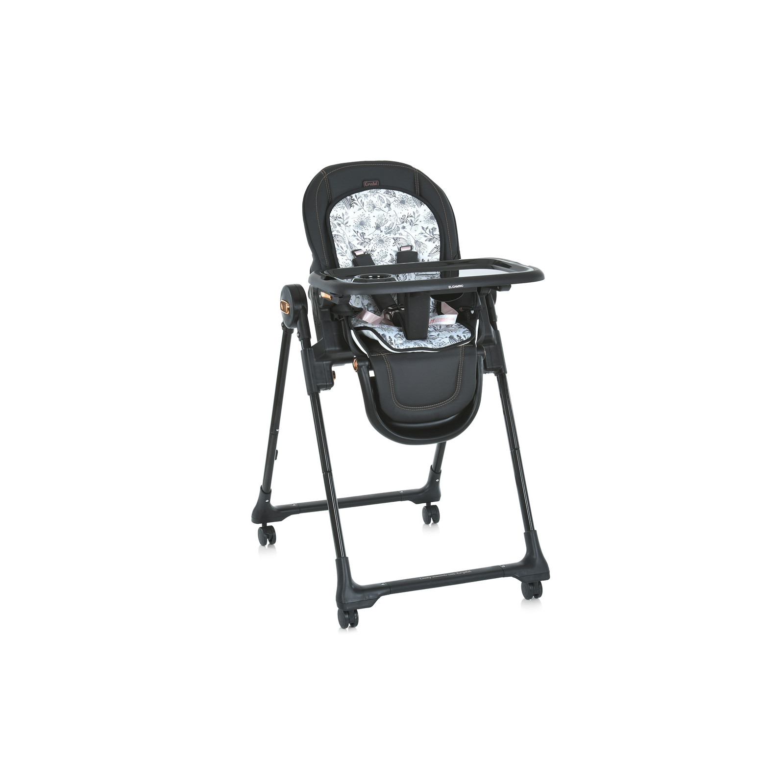 Стільчик для годування EL Camino Crystal ME 1037-B безпечний для малюка, адже обладнаний 5-ти точковими ременями безпеки з м'якими накладками та пластиковою анатомічною перегородкою для ніжок, які надійно захистять дитину від випадання. Стілець можна використовувати в 5-ти положеннях по висоті. Спинка сидіння регулюється по куту нахилу в 3-х положеннях для комфортного відпочинку дитини. Вкладиш на сидіння виготовлений з екошкіри для зручності миття. Завдяки коліщаткам зі стопорами на всіх ніжках, стілець можна переміщати не піднімаючи його.