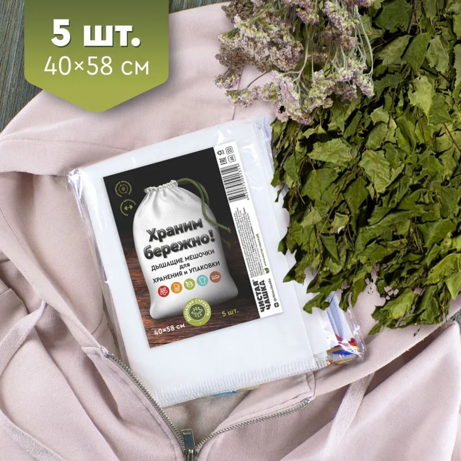 Дышащие мешочки для хранения и упаковки, 40х58 см, 5 шт