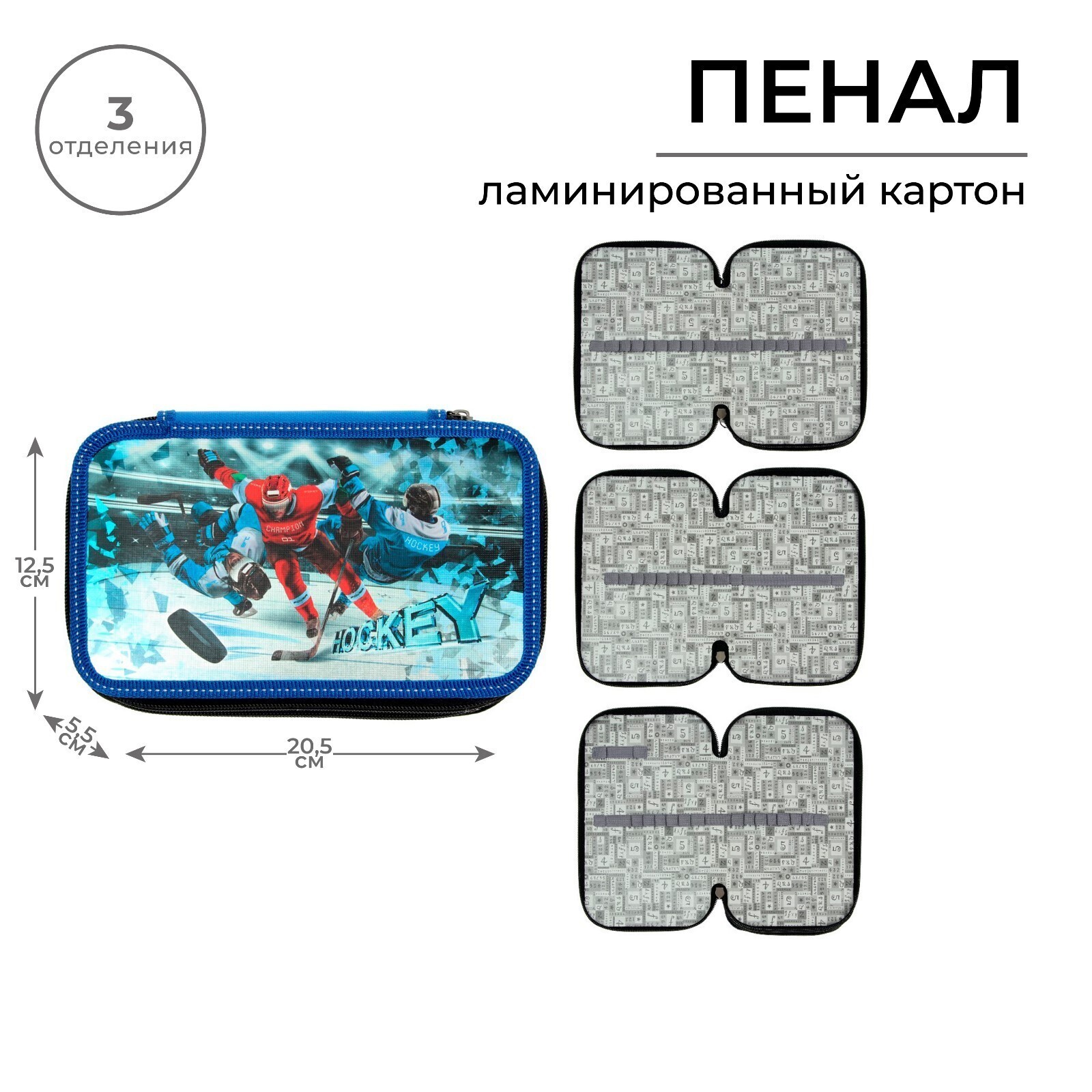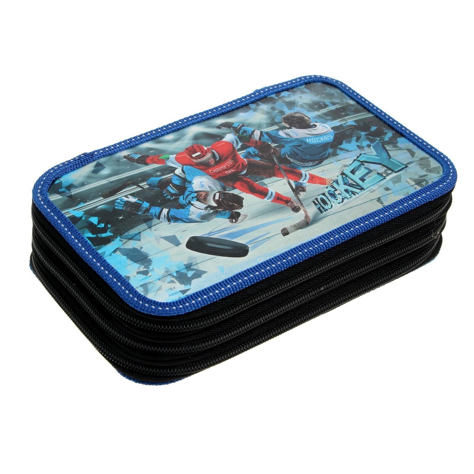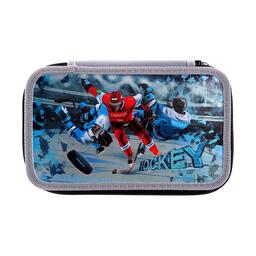 Пенал 3 секции, 125 х 205 х 55 мм, 8П26/3 Calligrata "Хоккеисты" (рисунок с эффектом металлика)