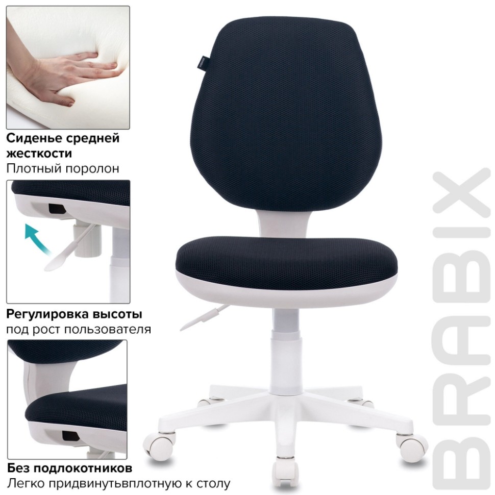 Детское кресло BRABIX "Fancy MG-201W" с сочетанием белой пластиковой основы и обивки насыщенного цвета. Конструкция кресла продумана до мелочей и максимально безопасна для ребенка. Пружинно-винтовой механизм качания спинки обеспечивает опору и поддержку, а также позволяет регулировать угол наклона. При помощи специального рычага можно отрегулировать высоту сидения. Крестовина кресла максимально увеличивает площадь основания и почти исключает возможность опрокидывания. Газлифт выдерживает и ребенка, и взрослого весом до 120 кг. Пятилучие - пластиковое белого цвета.Спинка и сиденье имеют плотную набивку, средней жесткости. Компактная модель, которая легко выдерживает нагрузку взрослого человека. Материал обивки: ткань. Цвет обивки: серый. Максимальная нагрузка: 120 кг. Тип механизма: "вверх-вниз" только регулировка высоты кресла. Крестовина (пятилучие): пластик. Подлокотники: нет. Минимальная высота кресла: 890 мм. Максимальная высота кресла: 1020 мм. Ширина кресла: 560 мм. Минимальная высота до сиденья: 435 мм. Максимальная высота до сиденья: 565 мм. Сиденье ширина: 450 мм. Сиденье глубина: 405 мм. Спинка ширина: 350 мм. Спинка высота: 455 мм. Поставляется в разобранном виде: да. Серия: Fancy. Соответствует требованиям ГОСТа: ГОСТ 19917-2014 Бренд - BRABIX. Производитель - Россия. Артикул - MG-201W_532412. Штрихкод - 4610093507735