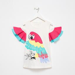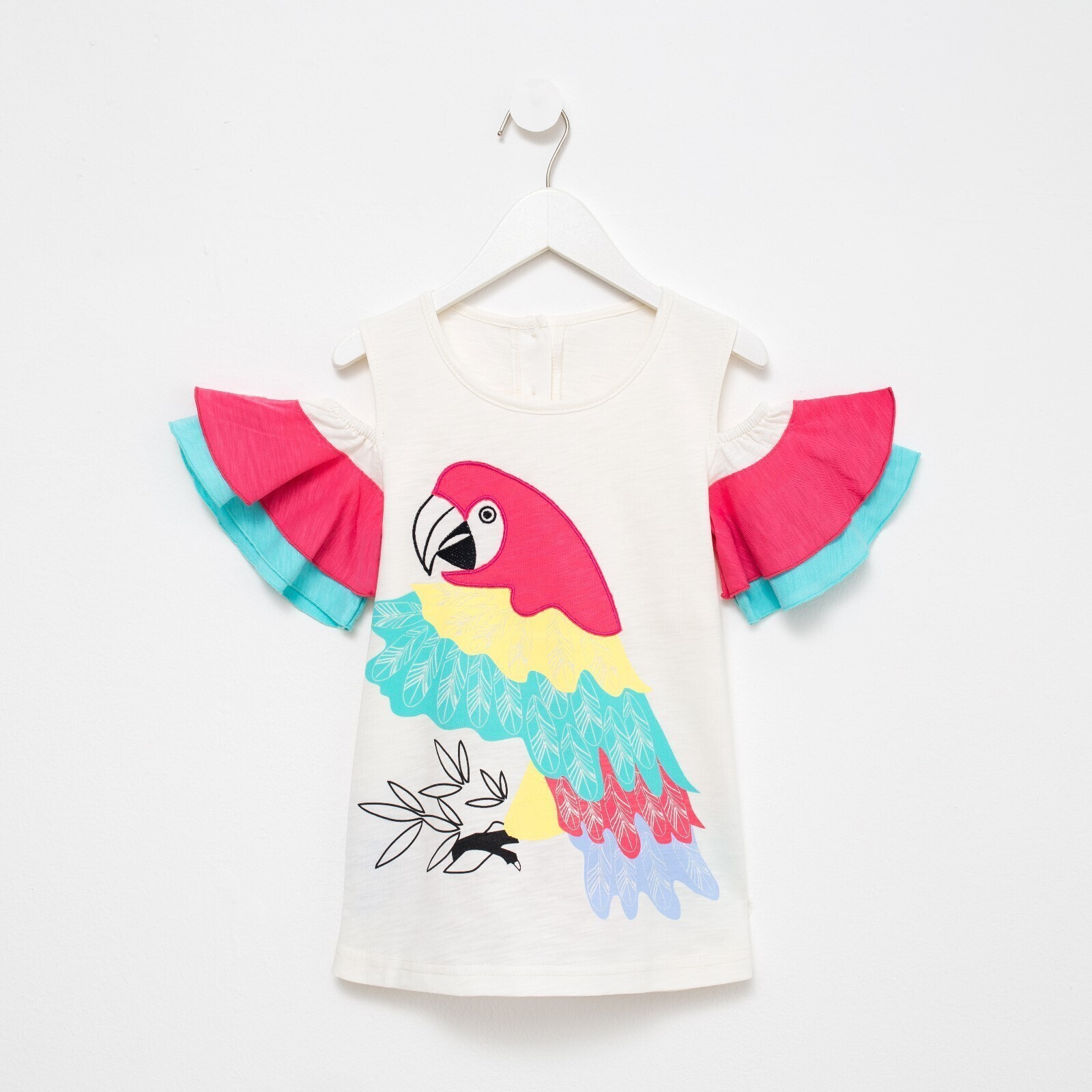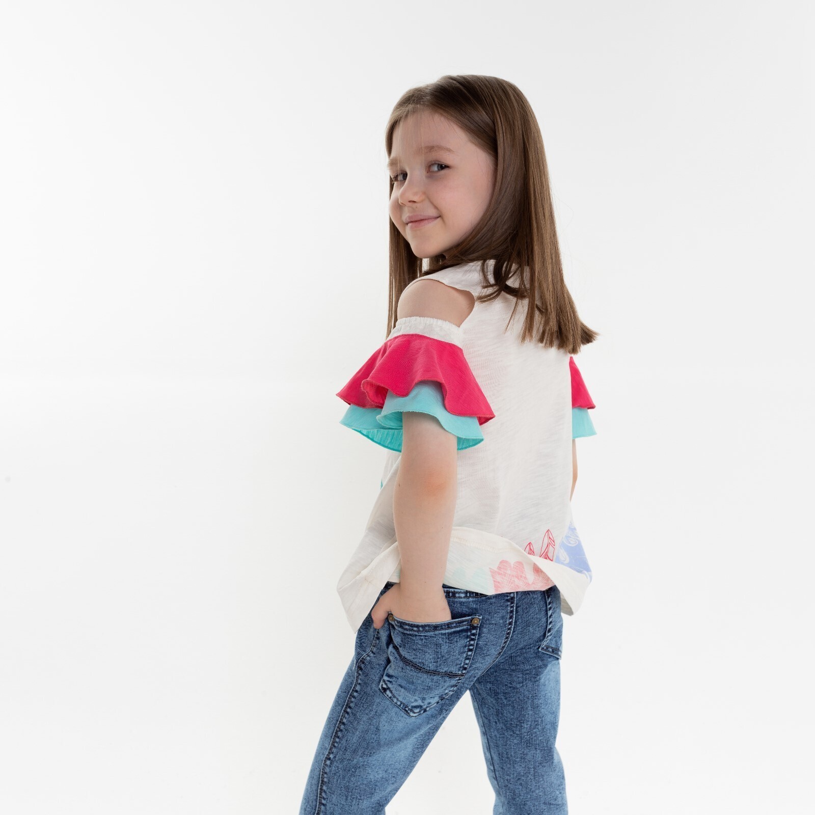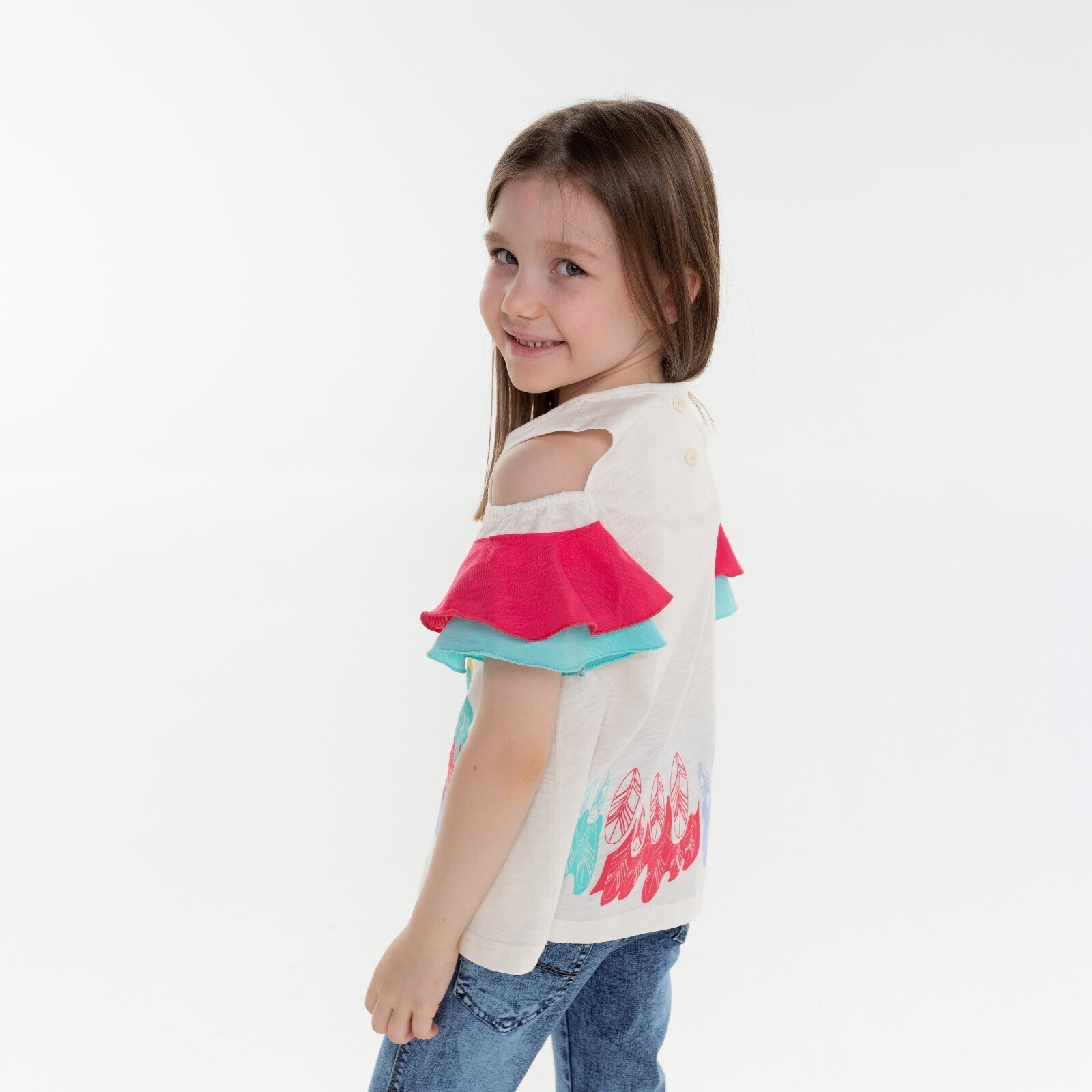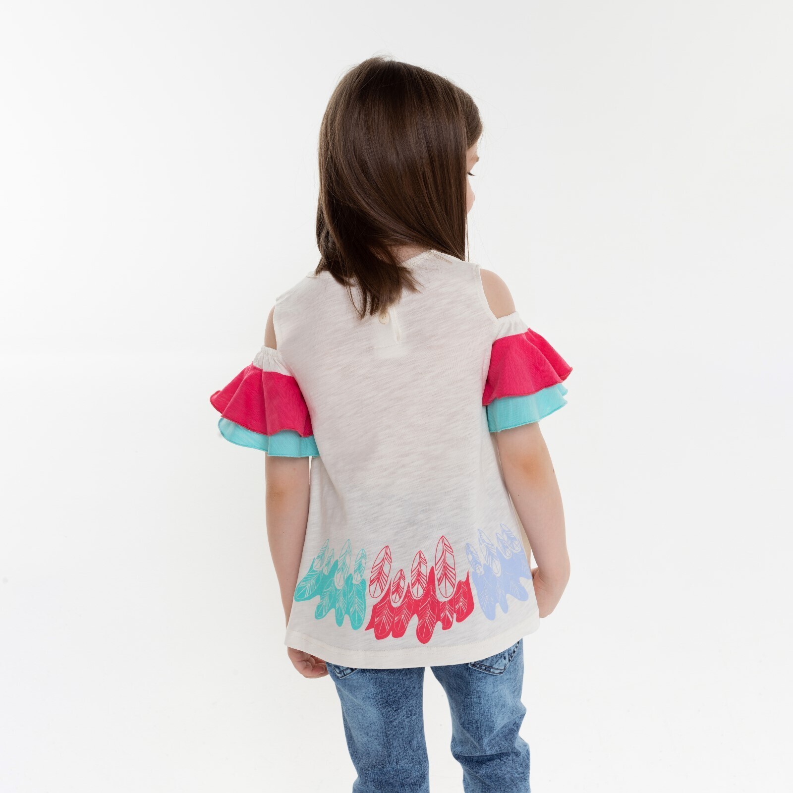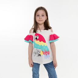 Футболка для девочки, цвет бежевый/коралловый, рост 122 см
