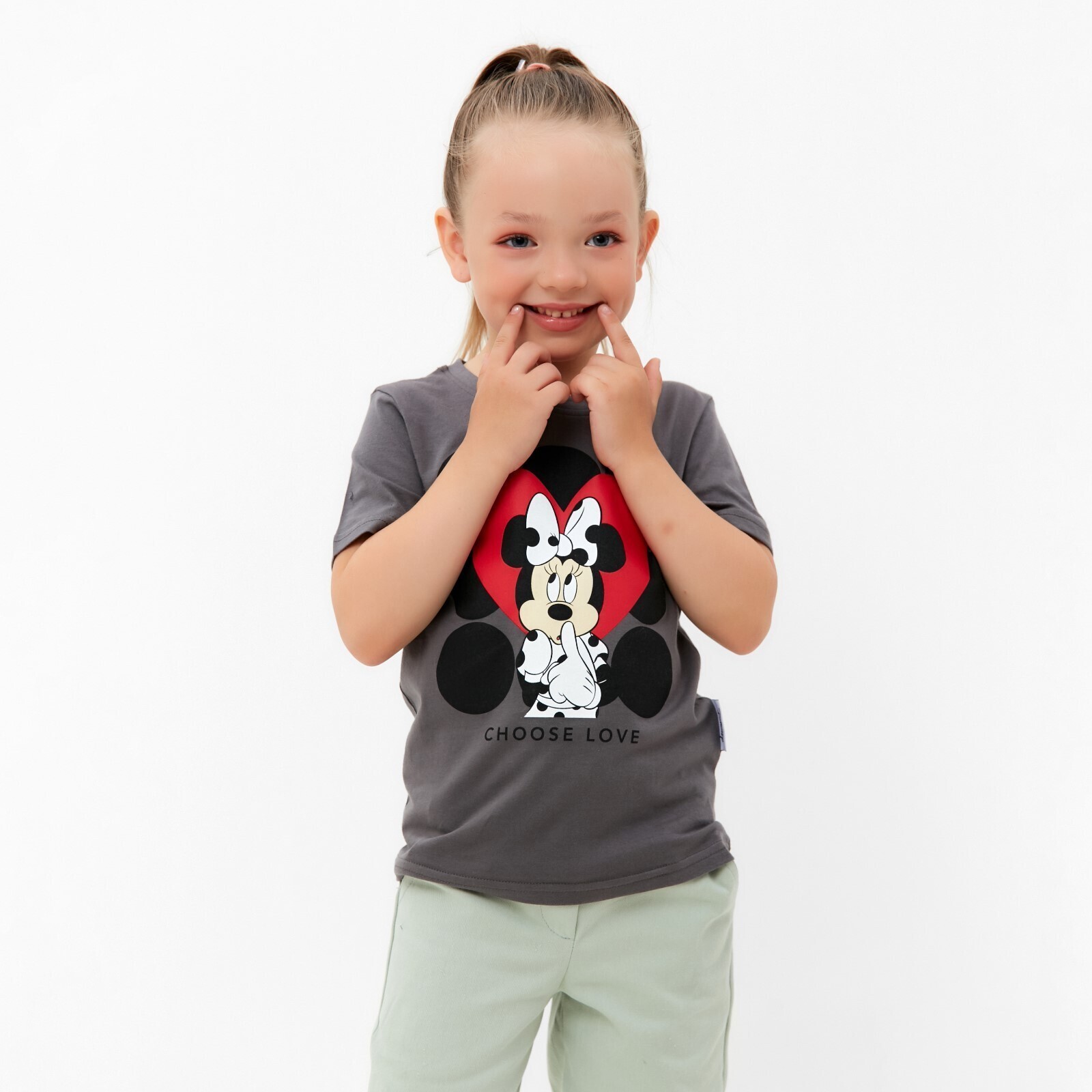 Футболка детская "Choose love"Минни Маус, рост 122-128, серый