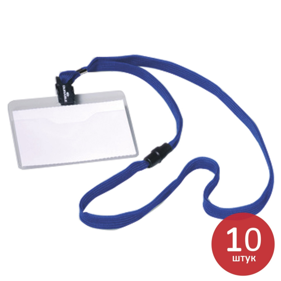 Бейджи горизонтальные (60х90 мм), КОМПЛЕКТ 10 шт., на безопасной синей ленте 44 см, DURABLE, 8139-07 (231305)