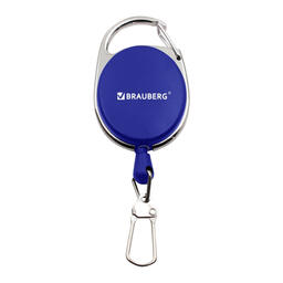 Набор из 5 шт, Держатель-рулетка для бейджей, 70 см, карабин, синий, в блистере, BRAUBERG, 238239 (238239)