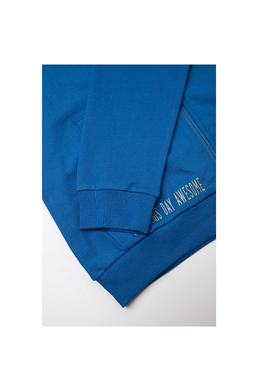 Однотонная толстовка для мальчика с капюшоном из коллекции MUST HAVE LATO BOY - идеальный выбор для повседневного отдыха и занятий спортом. Низ и рукава - на широкой резинке, которая обеспечивает комфортное прилегание. Толстовка аквамаринового цвета украшена небольшим принтом в виде надписи. Застегивается толстовка на удобную молнию с декоративной подвеской. Предусмотрены удобные карманы для любимых мелочей.