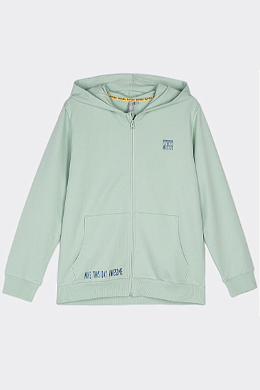 Однотонная толстовка для мальчика с капюшоном из коллекции MUST HAVE LATO BOY - идеальный выбор для повседневного отдыха и занятий спортом. Низ и рукава - на широкой резинке, которая обеспечивает комфортное прилегание. Толстовка аквамаринового цвета украшена небольшим принтом в виде надписи. Застегивается толстовка на удобную молнию с декоративной подвеской. Предусмотрены удобные карманы для любимых мелочей.