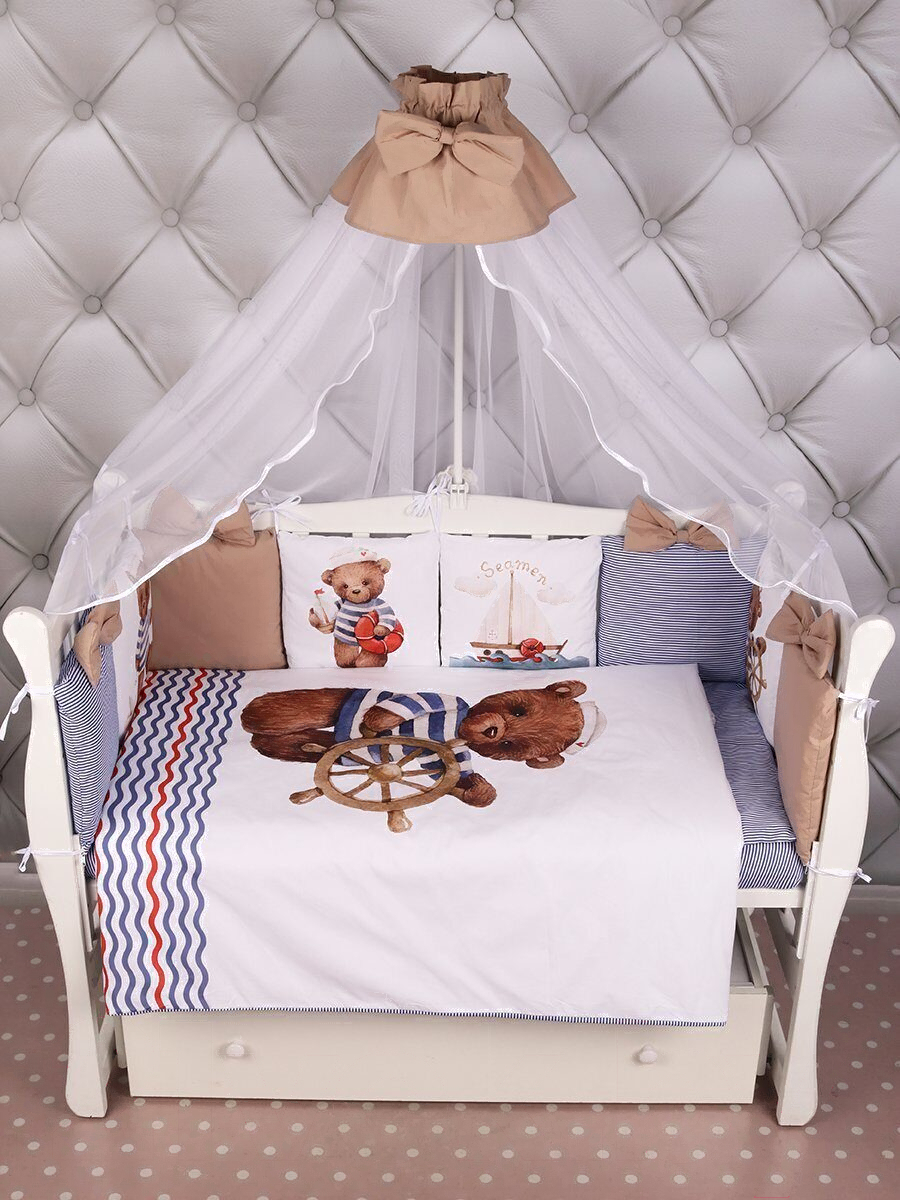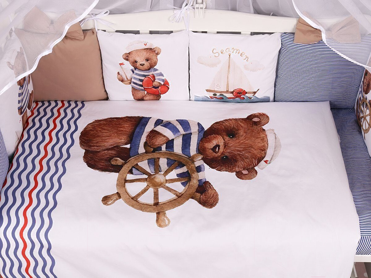 Комплект постельный для малышей Amarobaby Lux Капитан / AMARO-3018S-0K (кофейный/синий)