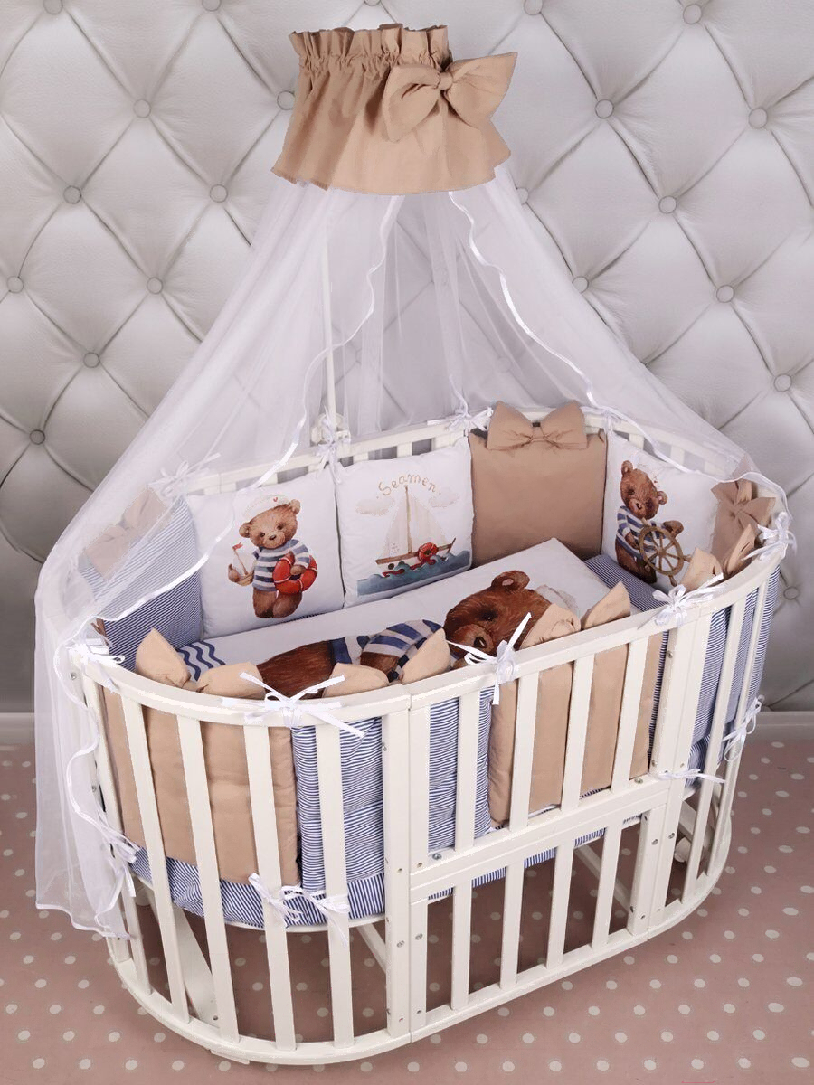 • Состав комплекта подушка, одеяло, простыня, наволочка, пододеяльник, бортик, балдахин