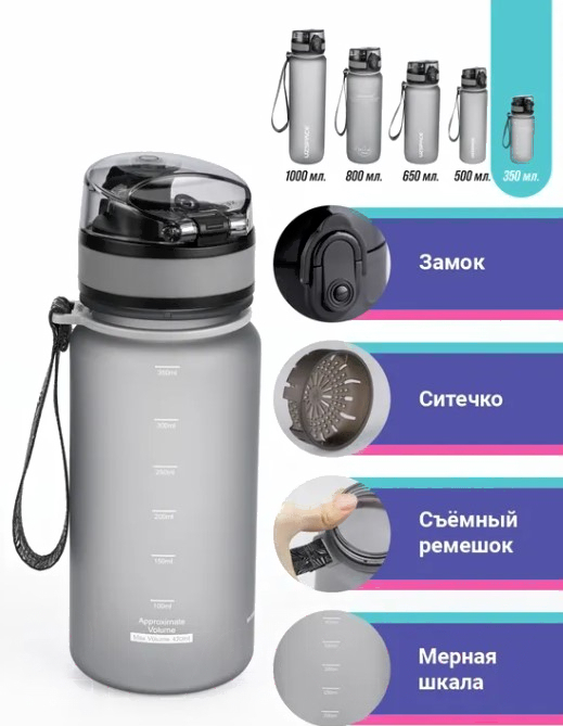 Бутылка для воды UZSpace Grey / 3037 (650мл, серый)
