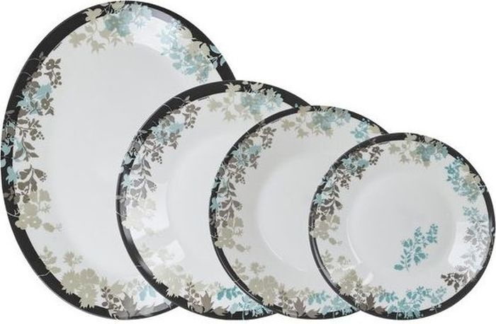 - Состав набора блюдо 335 мм - 1 шт. тарелка обеденная 270 мм - 6 шт. тарелка глубокая 225 мм - 6 шт. тарелка десертная 196 мм - 6 шт.