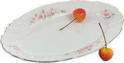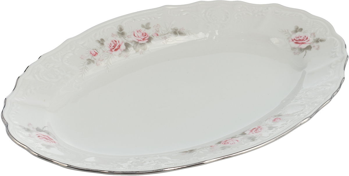 Блюдо овальное 26 см; декор "Бледные розы, отводка платина"