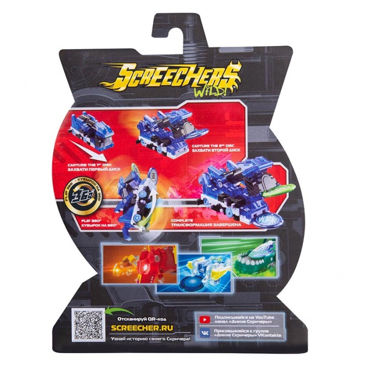 Что же делает Диких Скричеров такими особенными? С виду обычная машинка в ярком корпусе способна в воздухе словить диск и совершить грациозное сальто аж на 360 градусов, да и еще при этом трансформироваться в зверя! Машинка разгоняется, ловит диск, входящий в комплект, делает кувырок и в ту же секунду становится зверем, динозавром, рептилией или птицей. И все это происходит в воздухе за считанные секунды. Обратно в машинку игрушка собирается вручную. При этом, машинку можно трансформировать как самостоятельно, так и объединяя машинки данной линейки все вместе, трансформируя одним броском (потребуется не менее 10 дисков для единовременной трансформации мащинок).