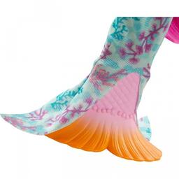 Куколка Маура Русалка - очаровательная героиня мультфильма. У малышки по-настоящему волшебный образ: длинные розовые волосы, нежно-розовая кожа с аккуратным мейк-апом. Наряд куклы - пластиковый топик и пышная юбка с принтом, а так же рыбий хвост.