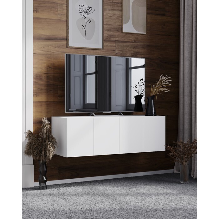 Тумба ТВ подвесная Дели-2, 1002х370х330, Белый/Белый