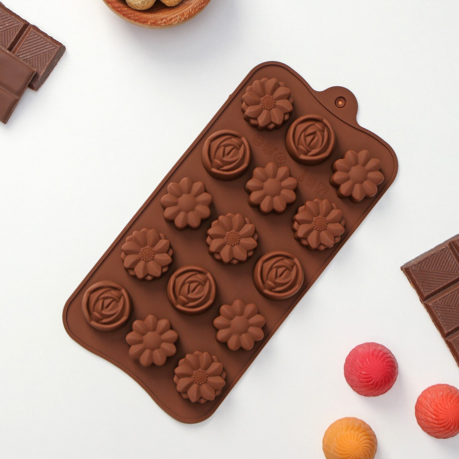 Форма силиконовая для льда и кондитерских украшений Доляна «Ассорти», 22×10,5 см, 15 ячеек (d=2,7 см), цвет коричневый