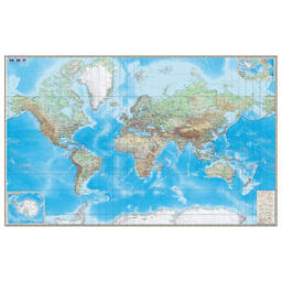 Карта настенная "Мир. Обзорная карта.Физическая с границами", М-1:15млн, размер 192x140см,ламинированная,тубус,632