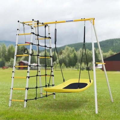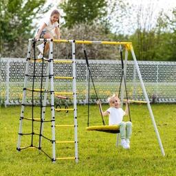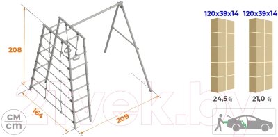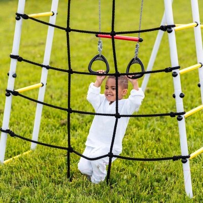 • Элементы комплекса в комплекте лестница, качели, кольца, рукоход, лаз