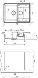 кухонная мойка lemark ramza 760 76x50 серый шелк