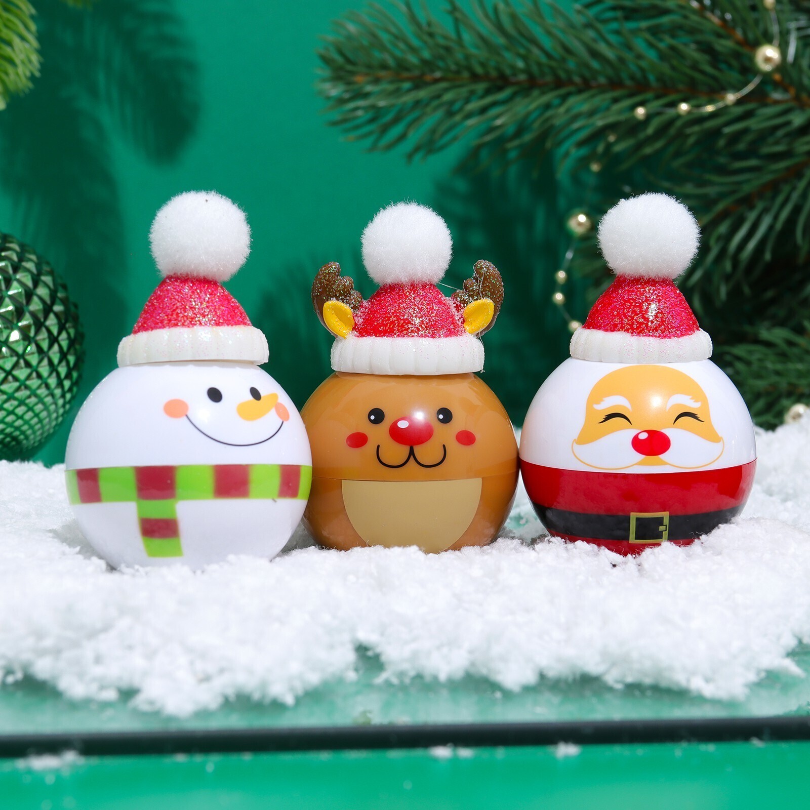 Бальзам для губ, набор: снеговик, дед мороз, олень