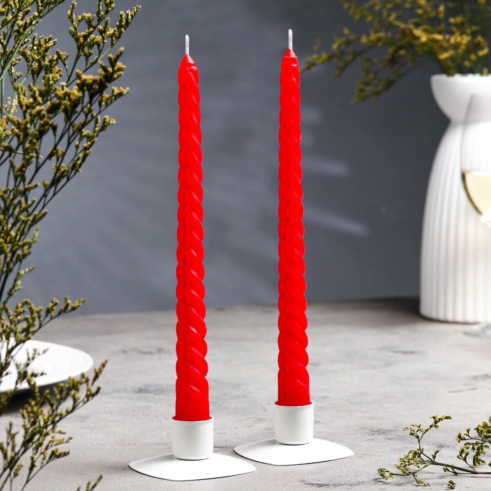 Набор свечей витых, 2,2х 25 см, лакированная 2 штуки, красный