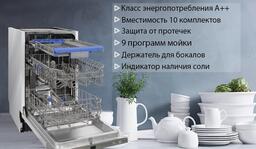 Особенности конструкциивнутренняя поверхность из нержавеющей стали, дисплей, использование средств 3 в 1, проточный водонагреватель, регулируемая по высоте корзина для посуды, таймер отсрочки, Регулировка высоты корзин