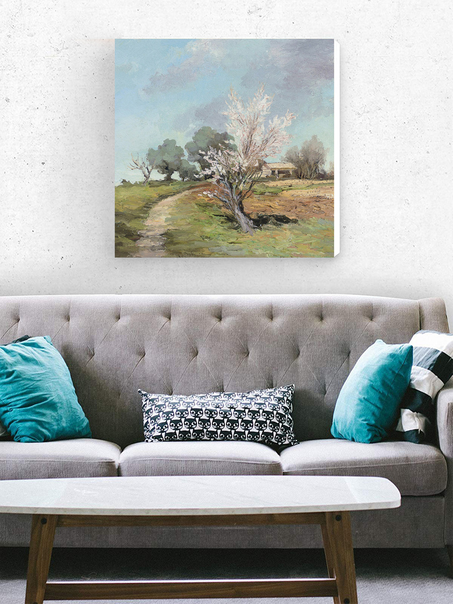 Картина на деревянном подрамнике, канвас (40х40 см), Дерево у дороги, АРТВЕНТУРА