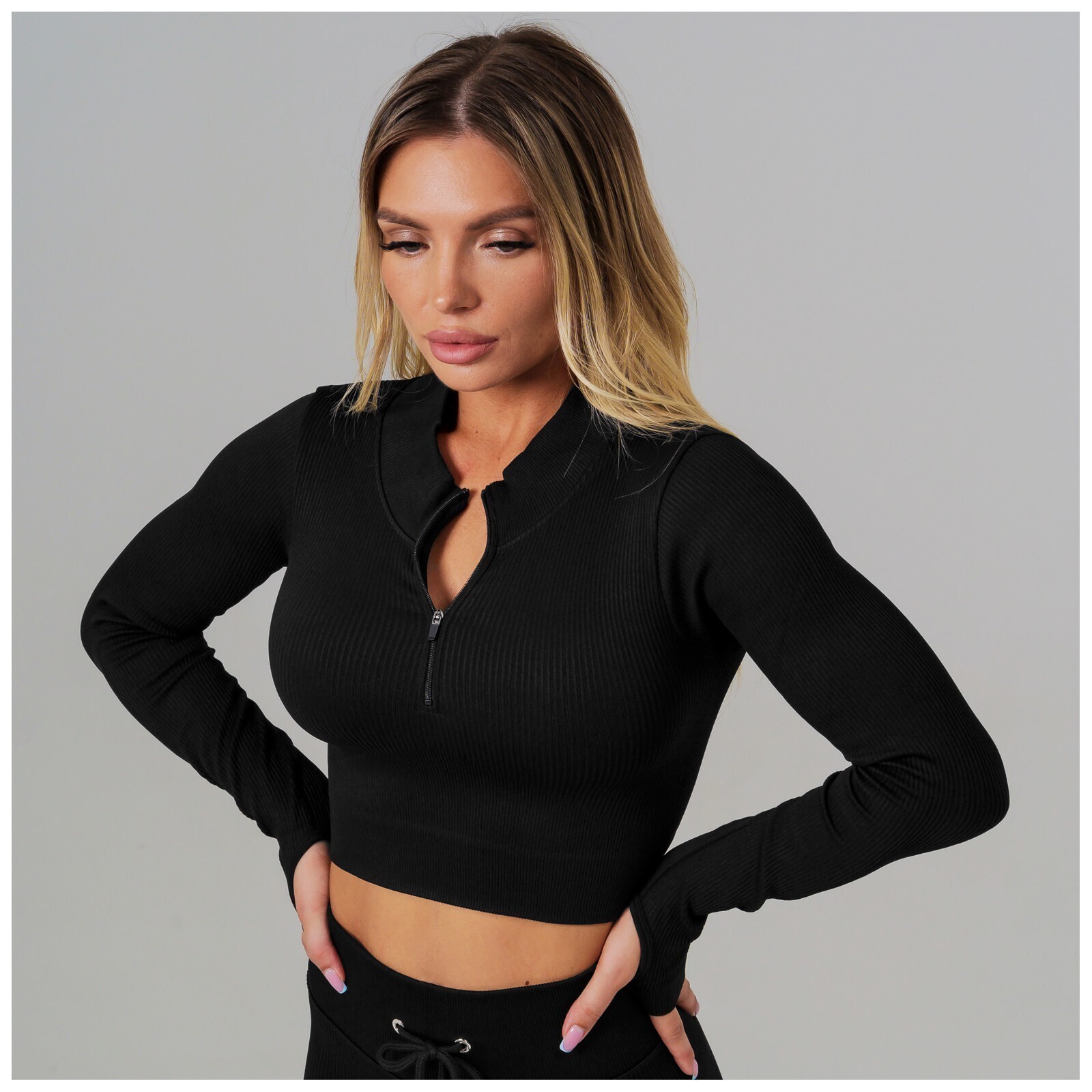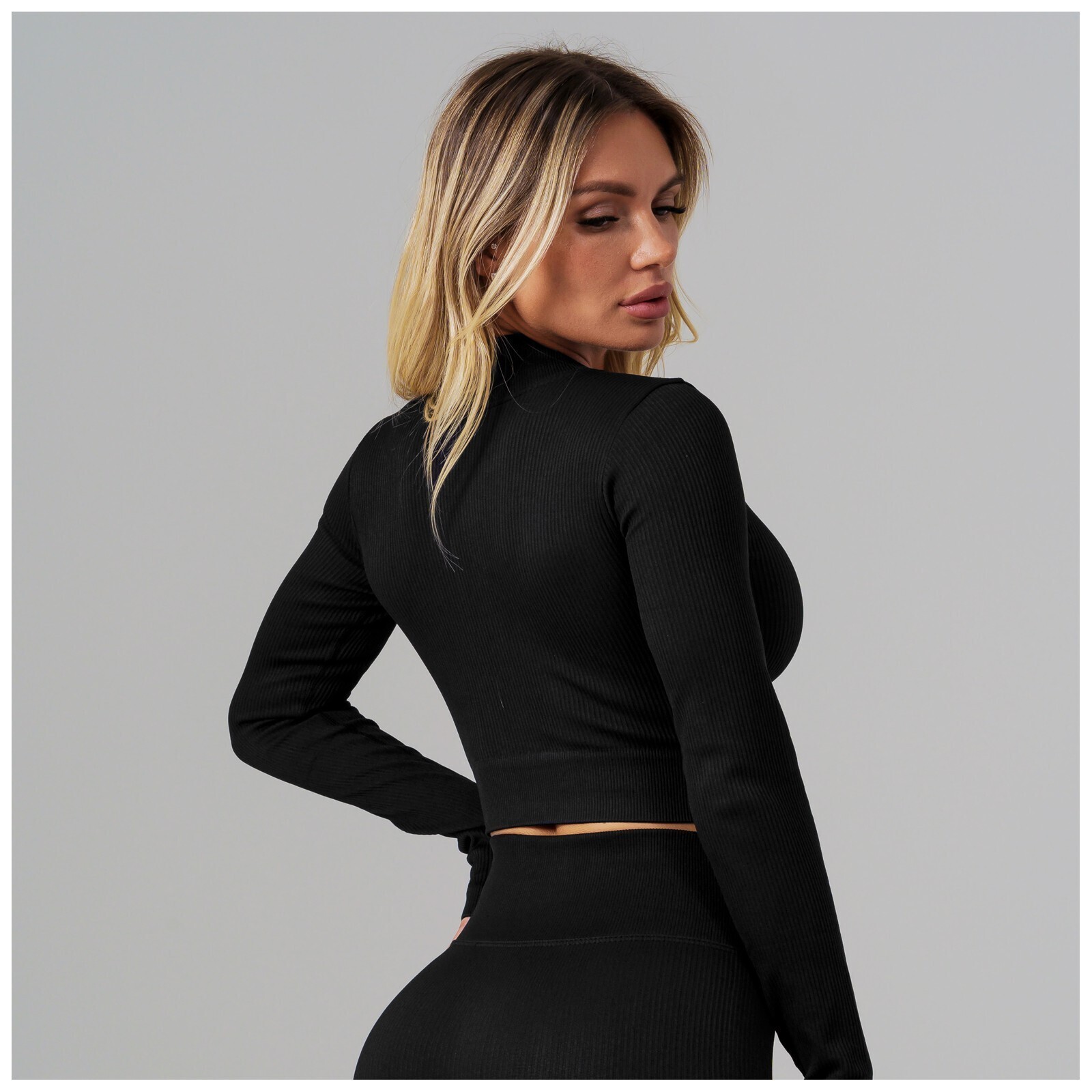 Топ спортивный с длинными рукавами, р. M, цвет чёрный