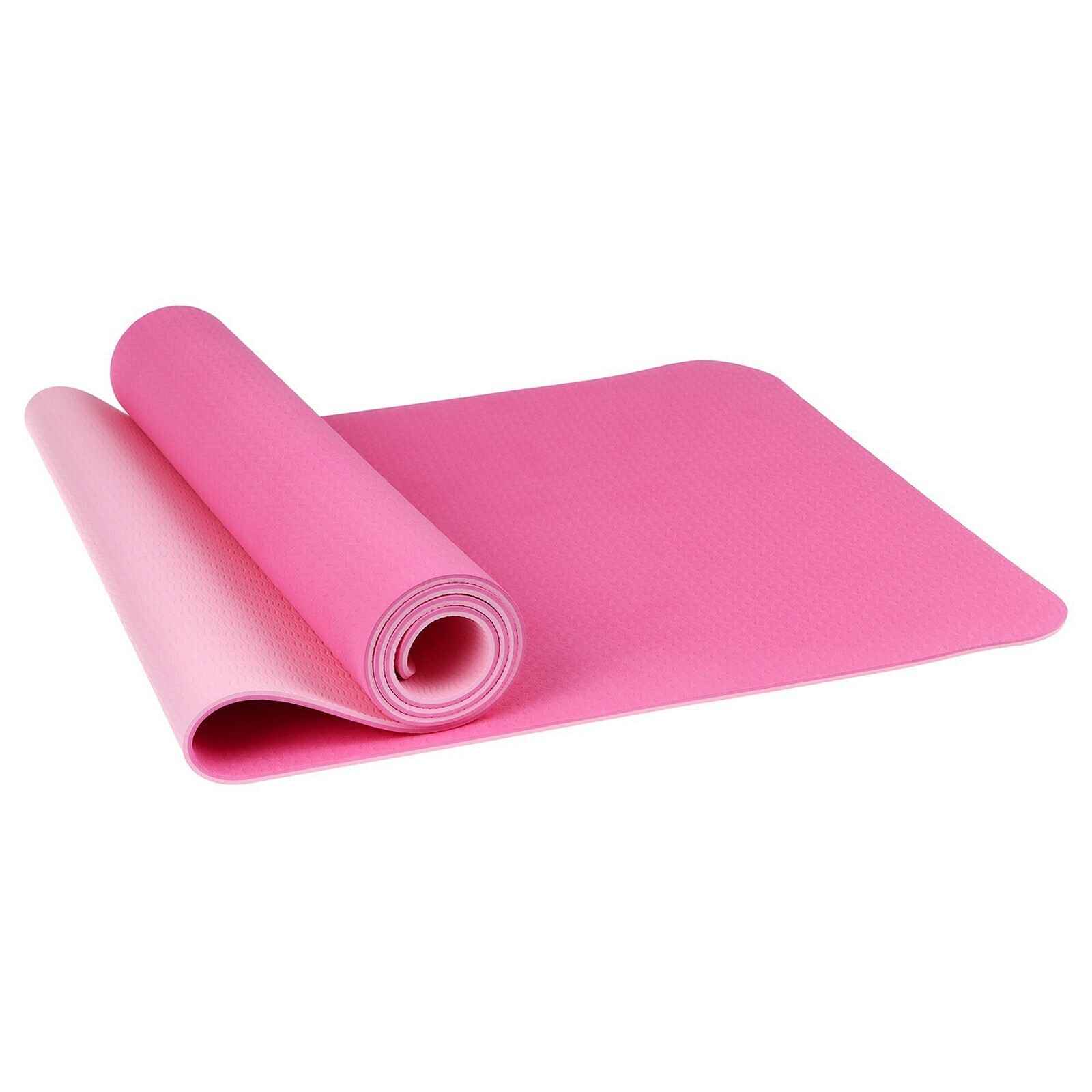 Коврик для йоги, 183 х 61 х 0,6 см, двухцветный, цвет розовый