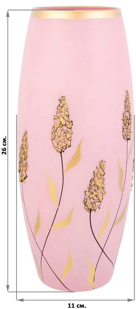 Ваза 11х11х26 см Elan Gallery Золотые колосья на розовом бочонок