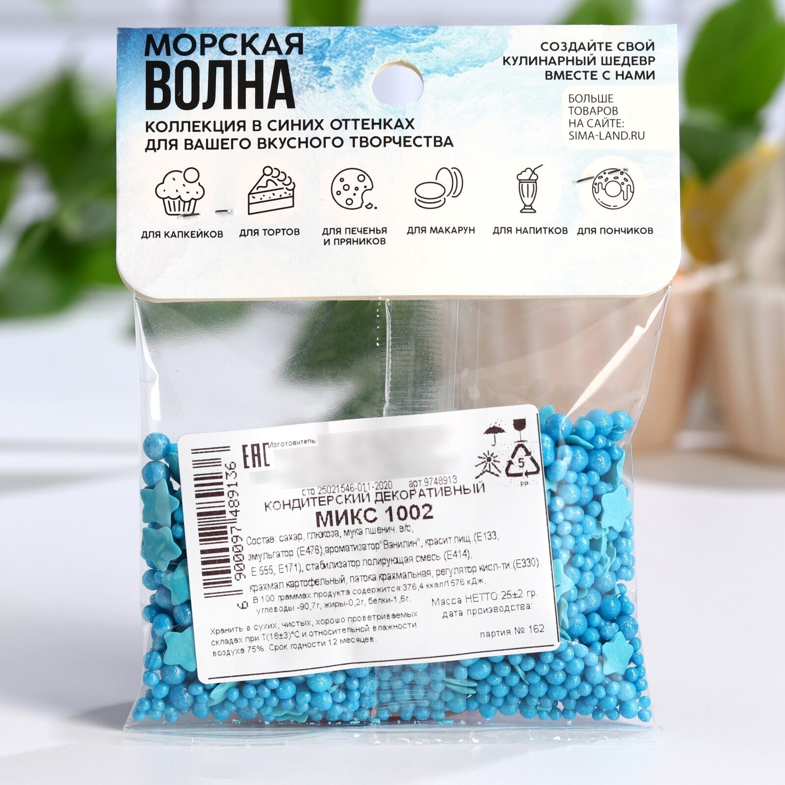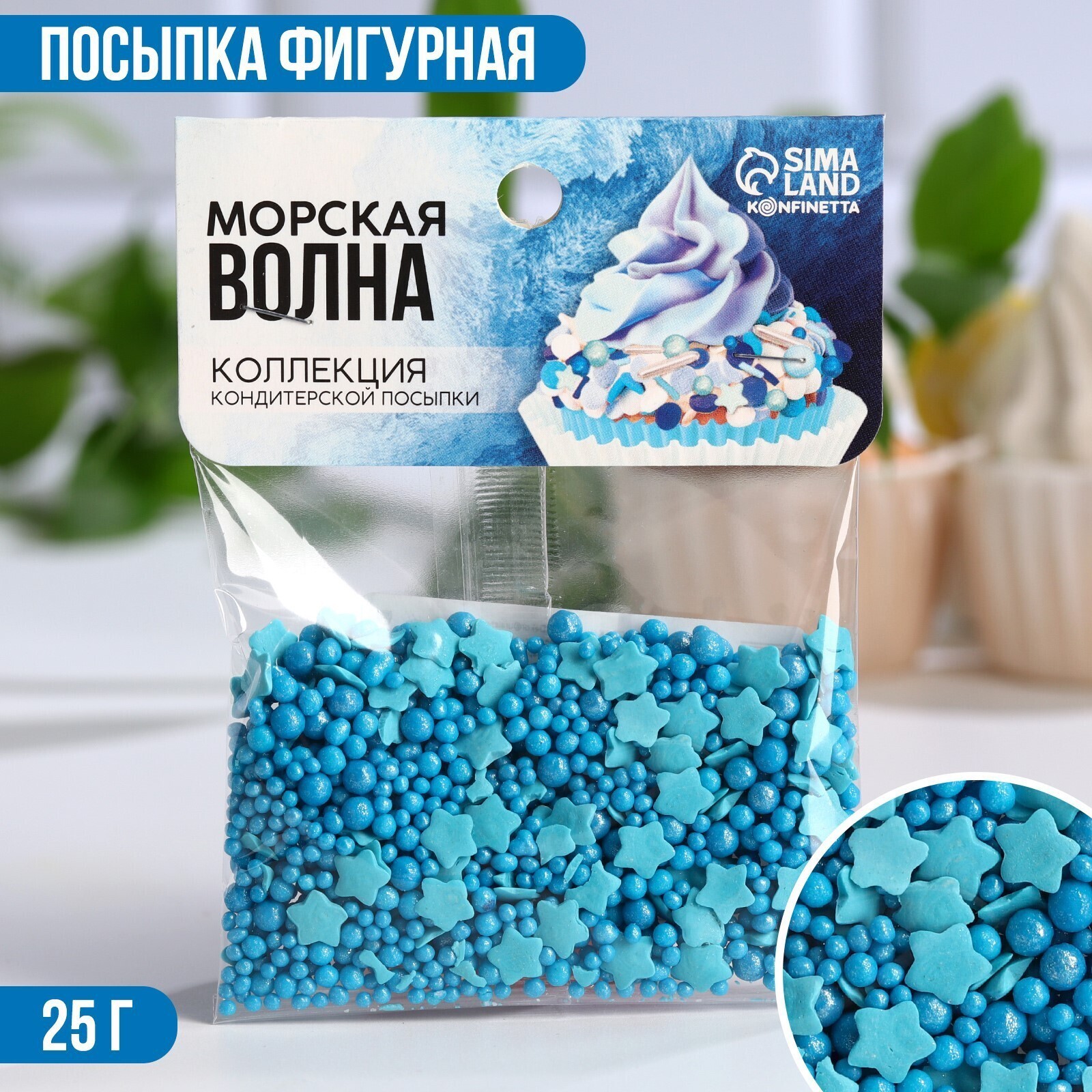 KONFINETTA Кондитерская посыпка мягкая Морская волна: звезды и шарики»: синяя, 25 г.