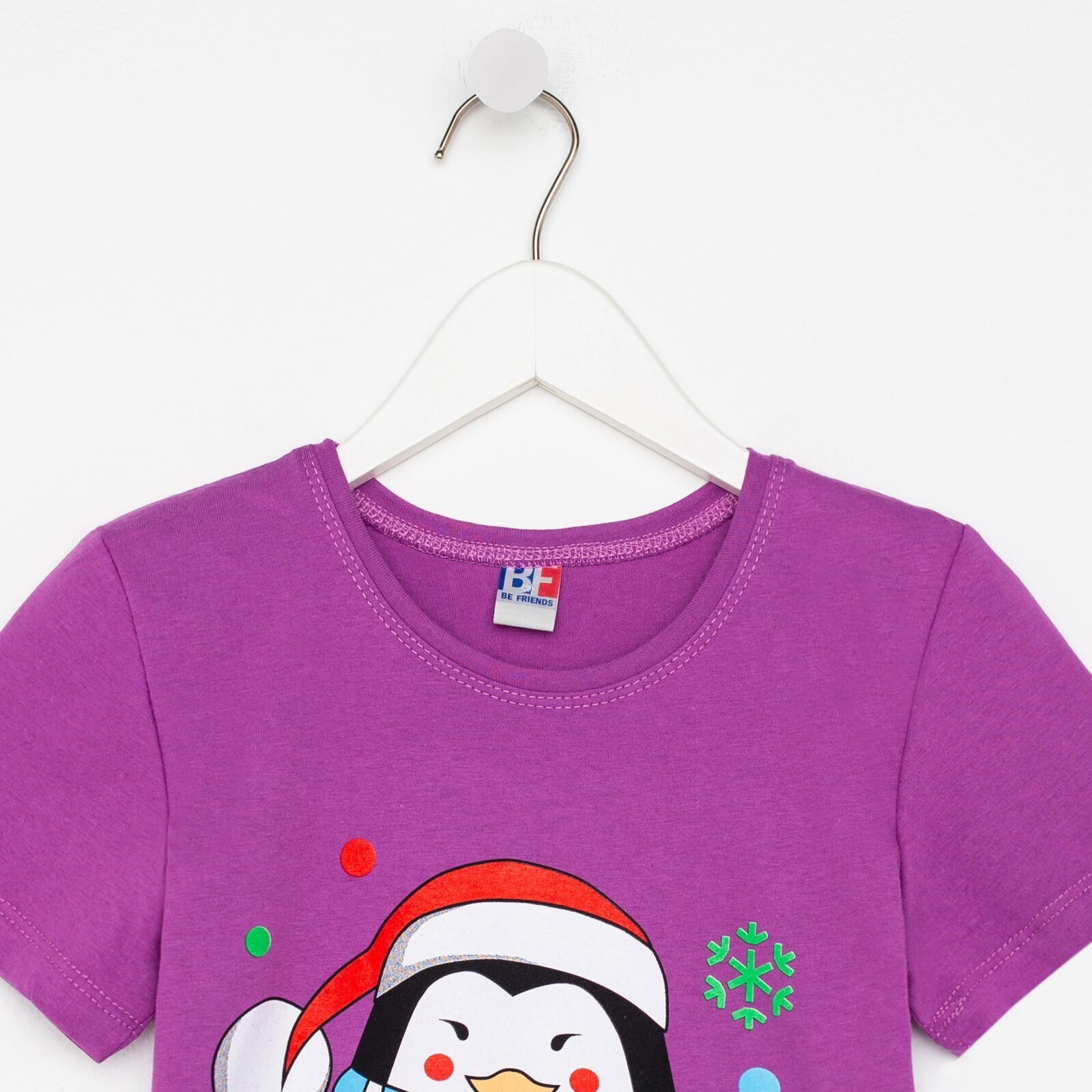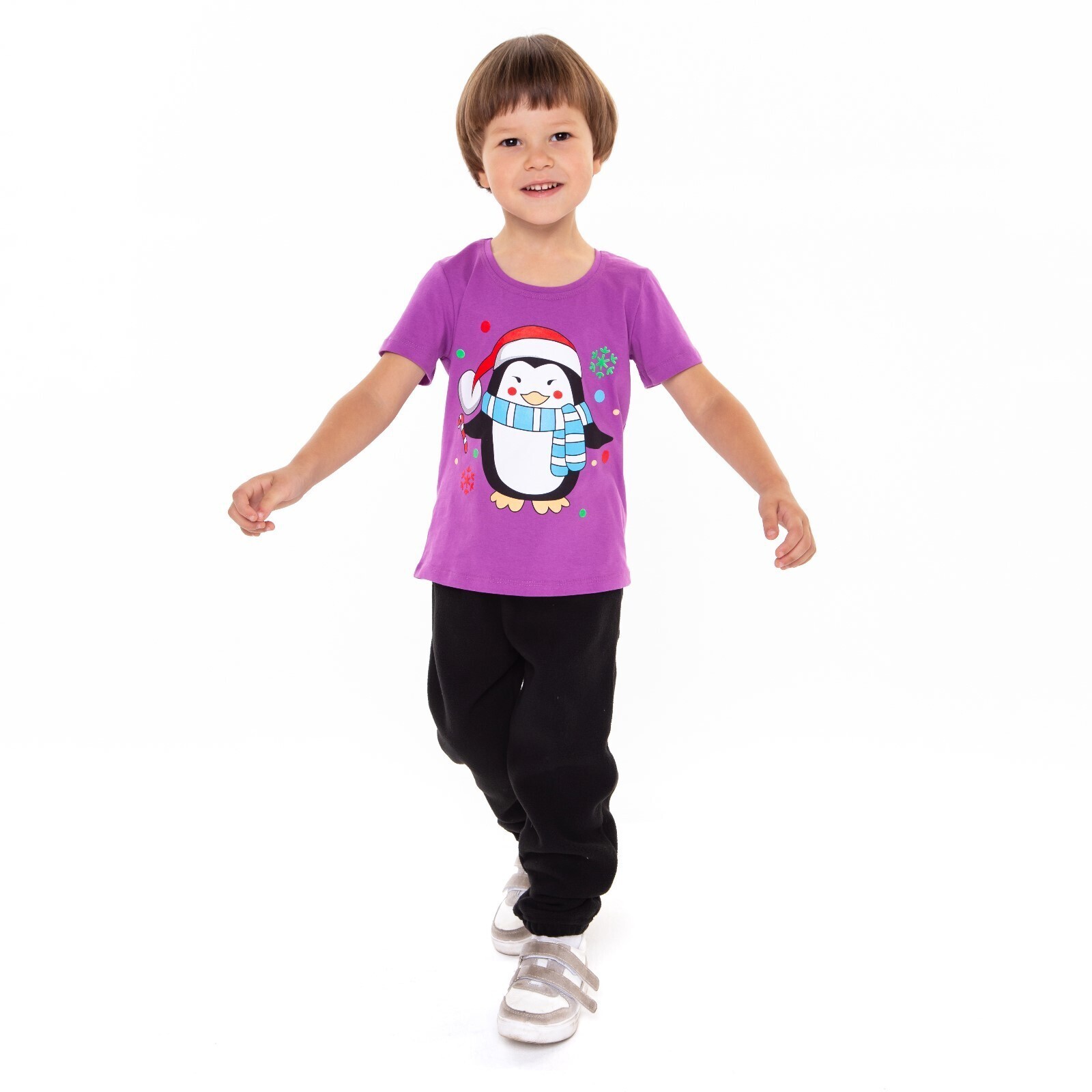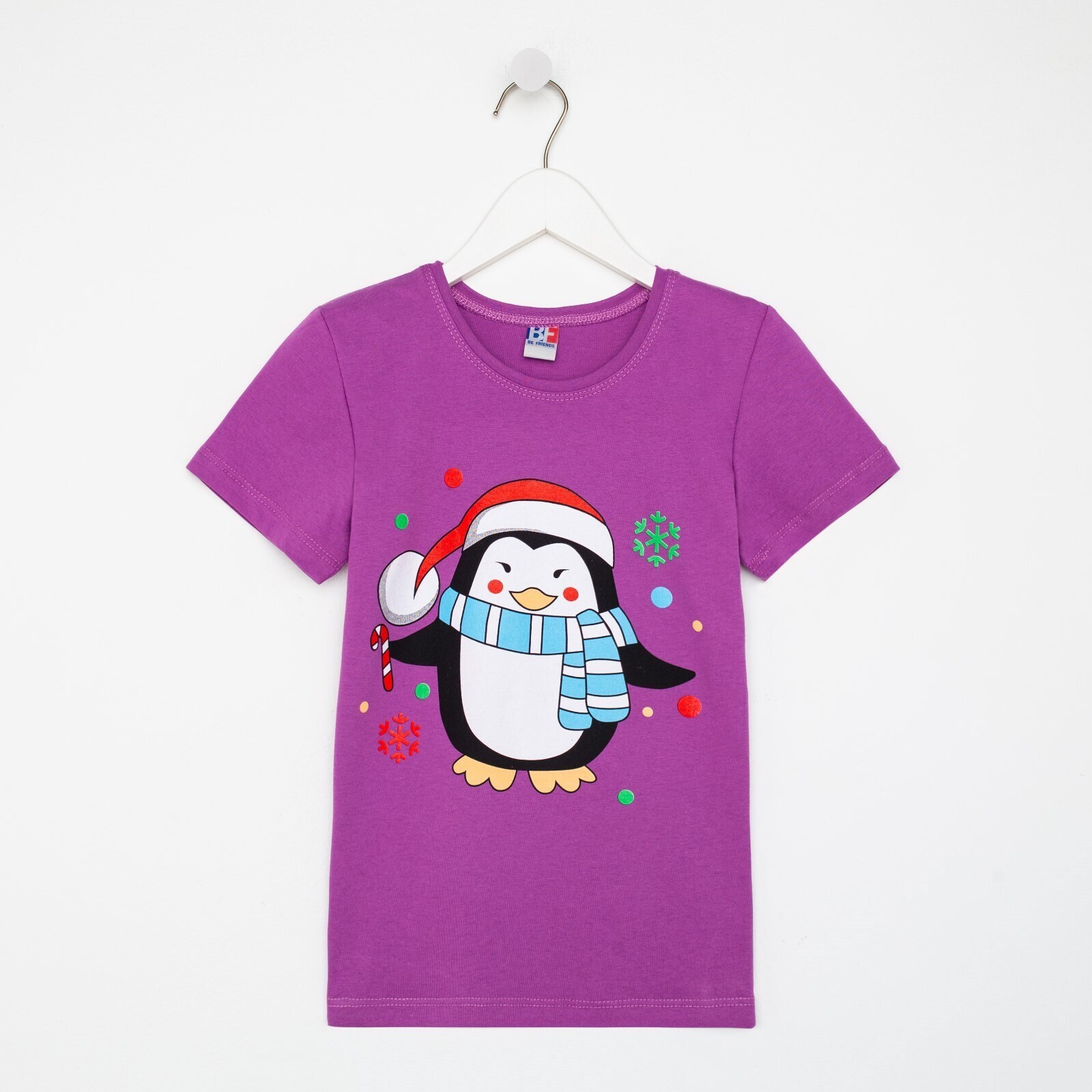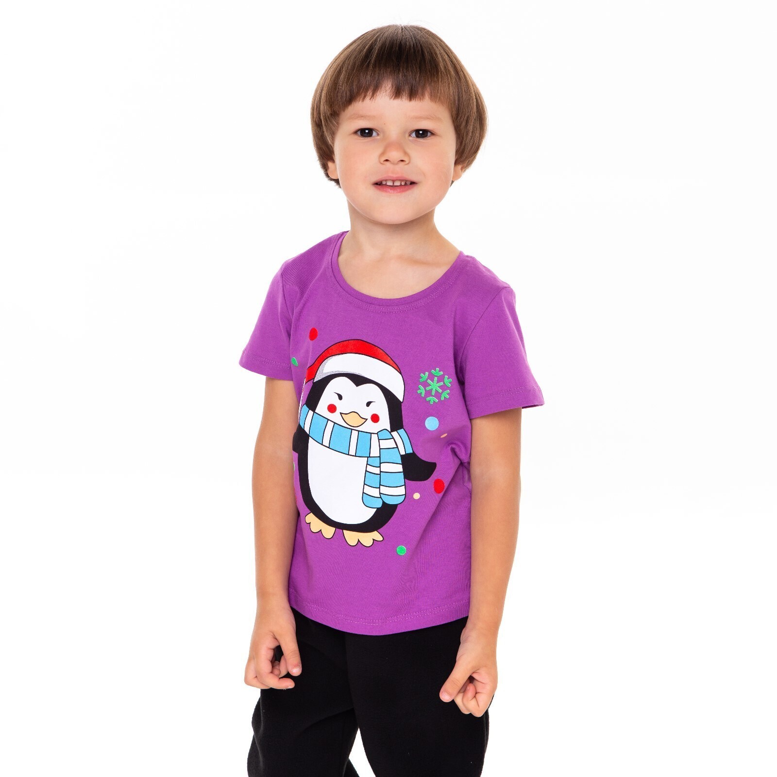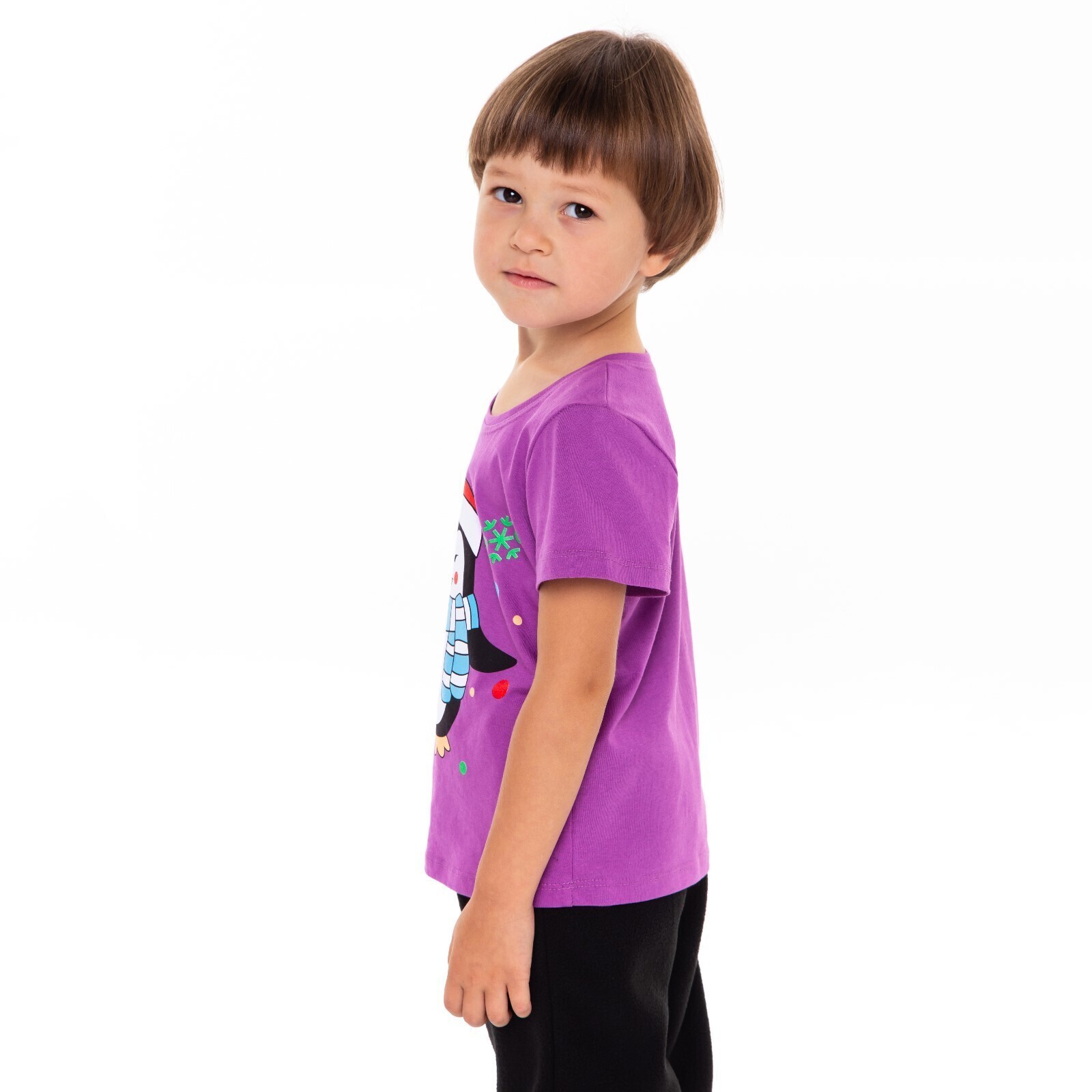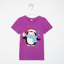 Футболка детская, цвет фиолетовый/пингвин, рост 104 см