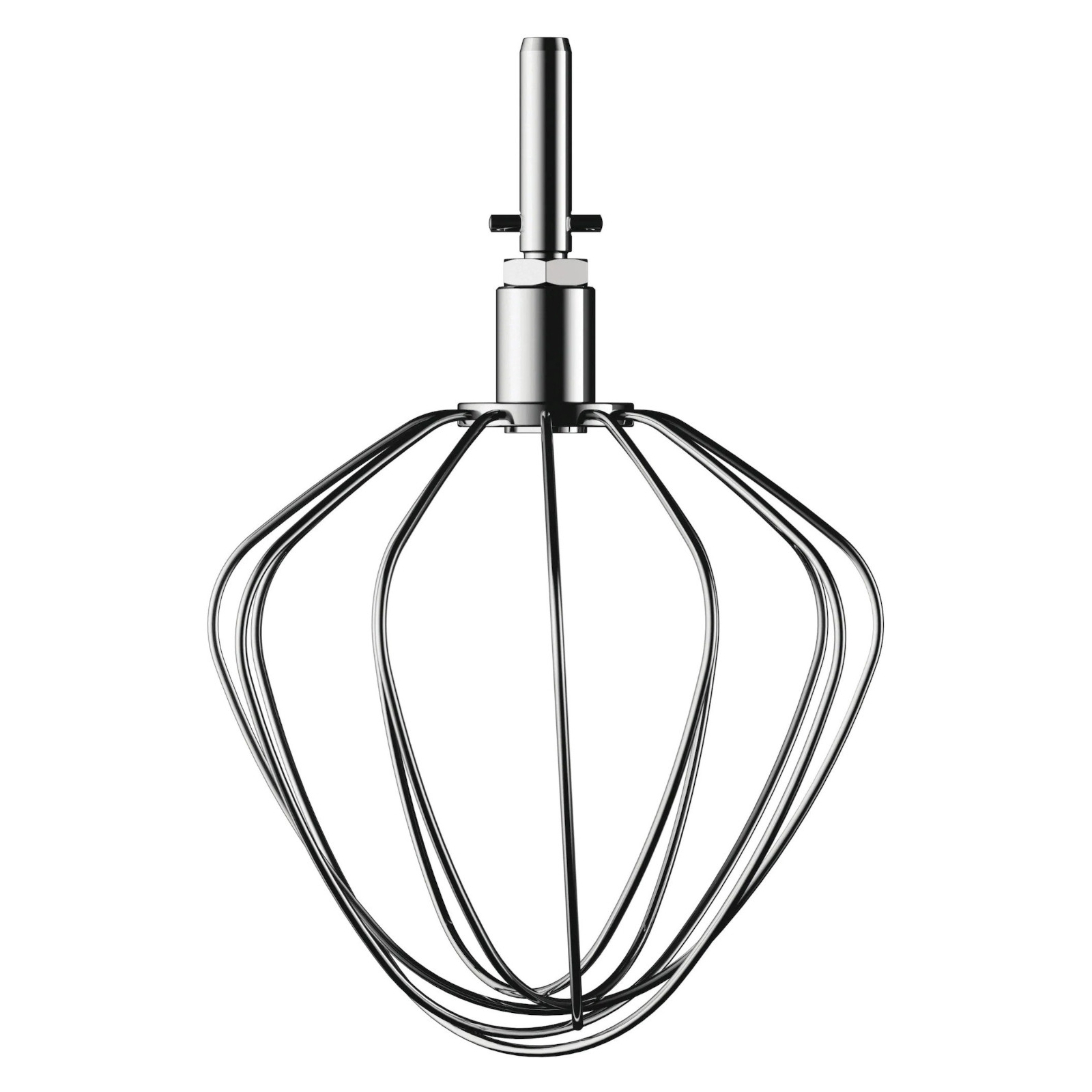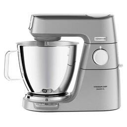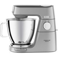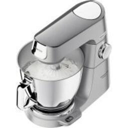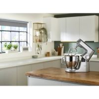 АКСЕСУАРИ У КОМПЛЕКТІ: K-збивач, вінчик для збивання, гак для замішування з нержавіючої сталі та гнучкий збивач зі скляним блендером, подрібнювач, 2 миски (7 л та 5 л), кришка захисту від бризок, шпатель.