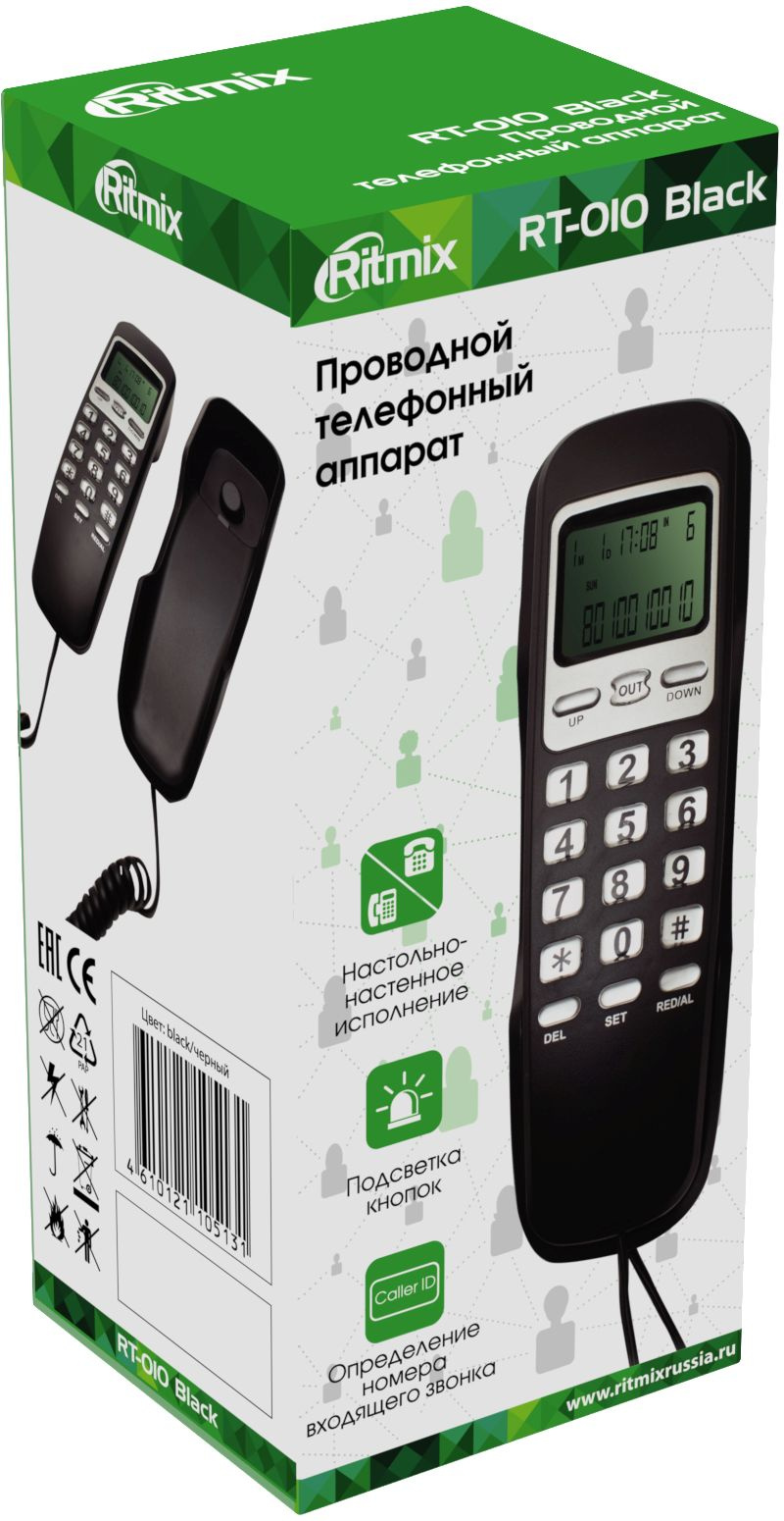 Телефон проводной Ritmix RT-010 черный