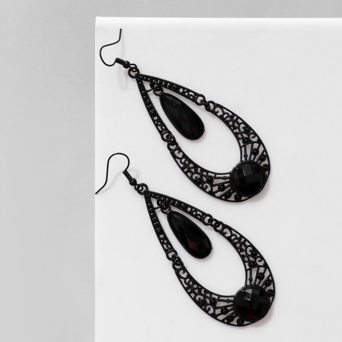 - Вид серьги Висячие, Из металла, Со стразами