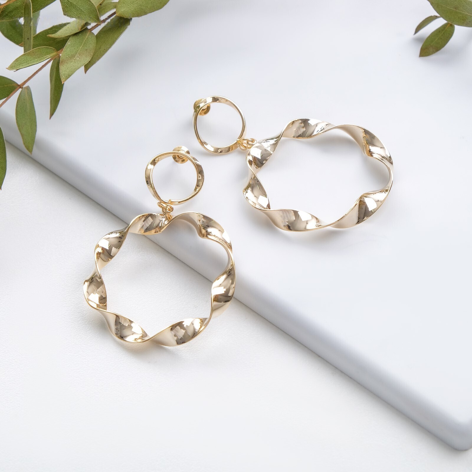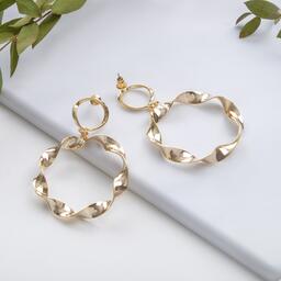 Серьги металл "Атмосфера" два круга, цвет золото