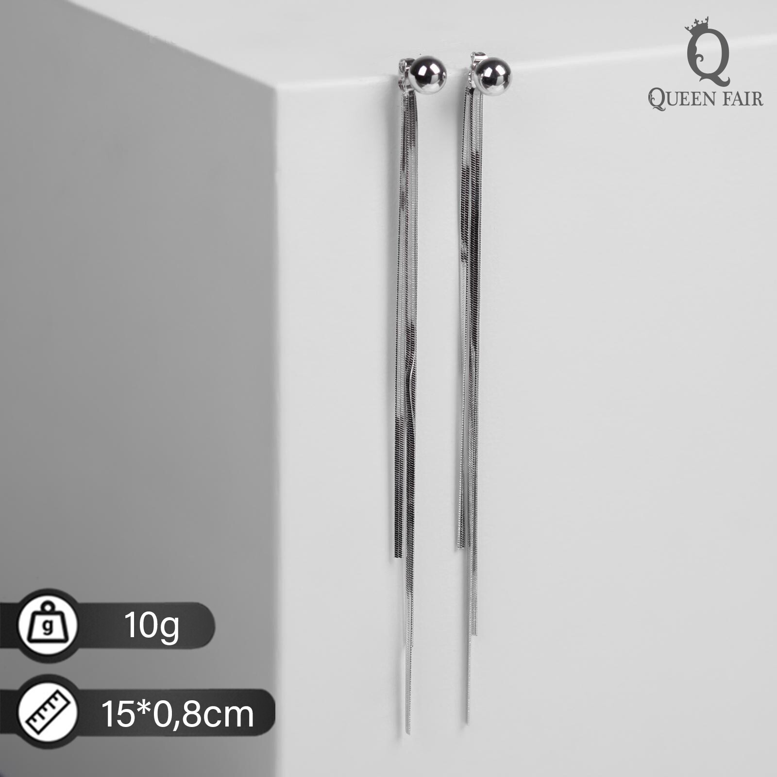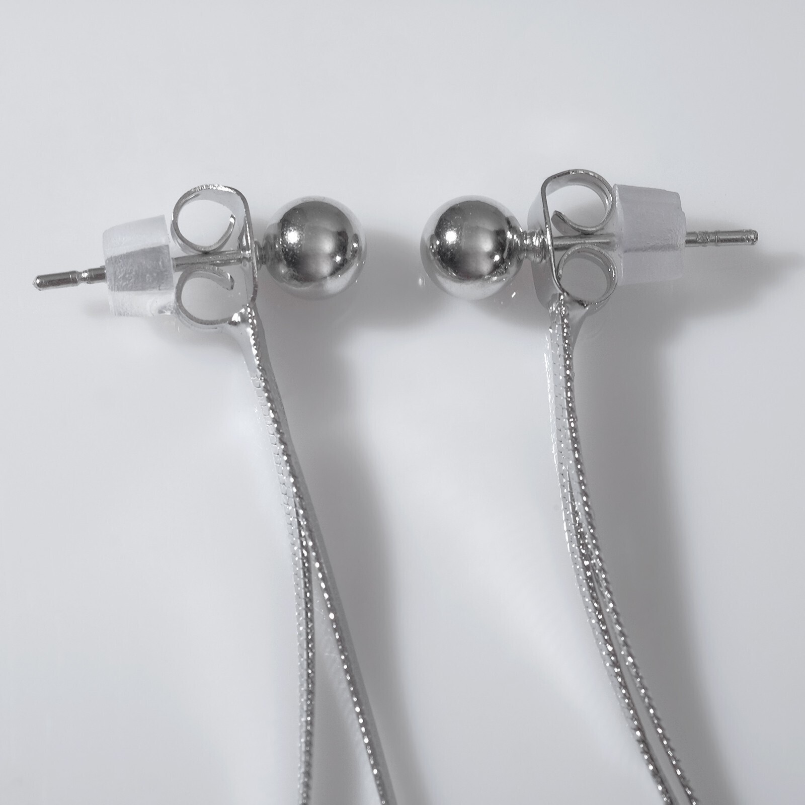 Серьги висячие "Изящество" плоские нити, цвет серебро, 15см