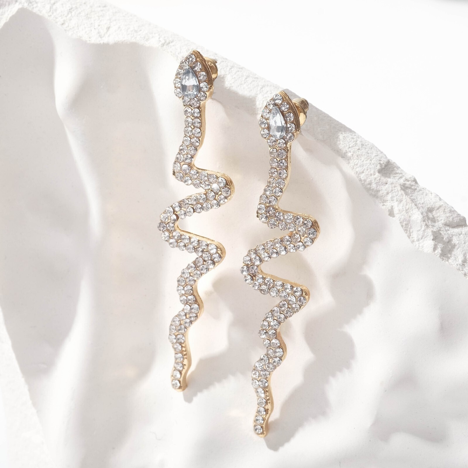 - Вид серьги Висячие со стразами