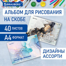 Альбом д/рис. А4 40л., скоба, обложка картон, BRAUBERG, 205х290мм, Мрамор, (2 вида), 106708
