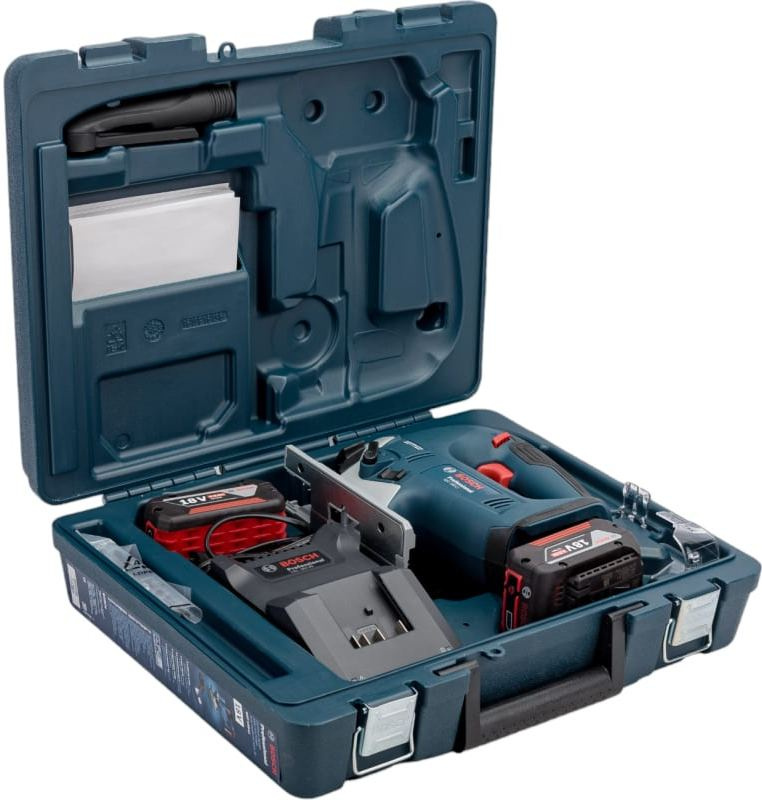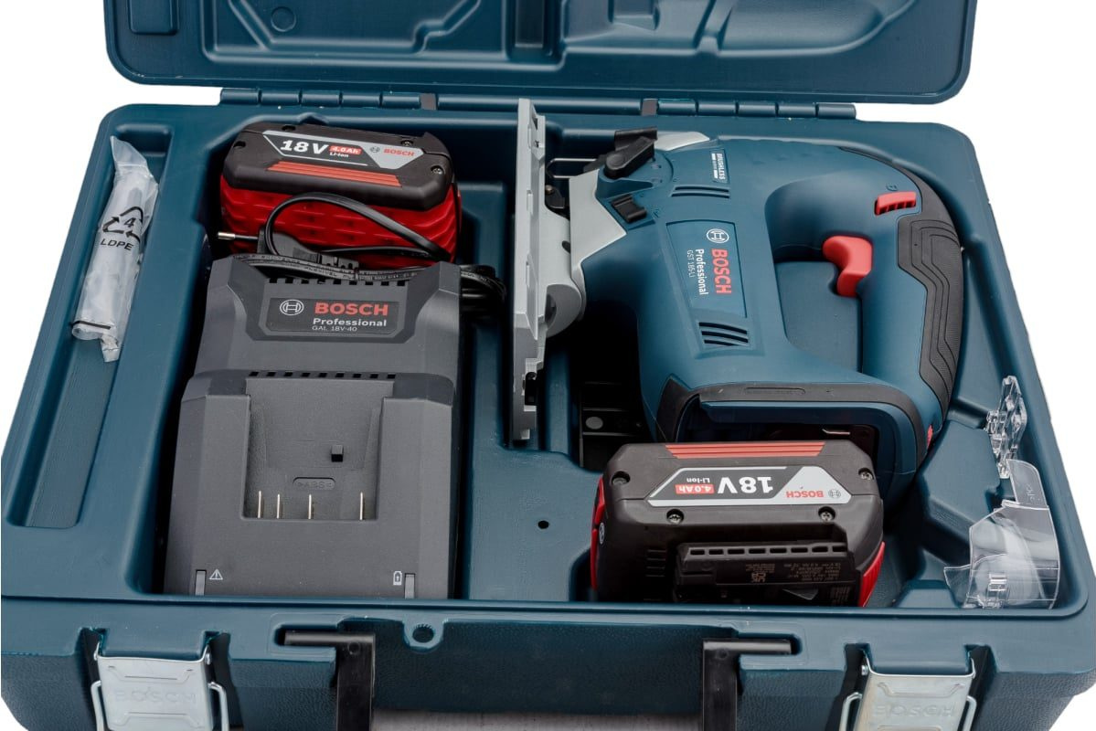 Комплект поставкиЛобзик GST 185-LI, зарядное устройство GAL 18V-20, аккумулятор 18 В 4 Ач, 3 лобзиковые пилки T 144 D, защита от скола, пластиковый кейс