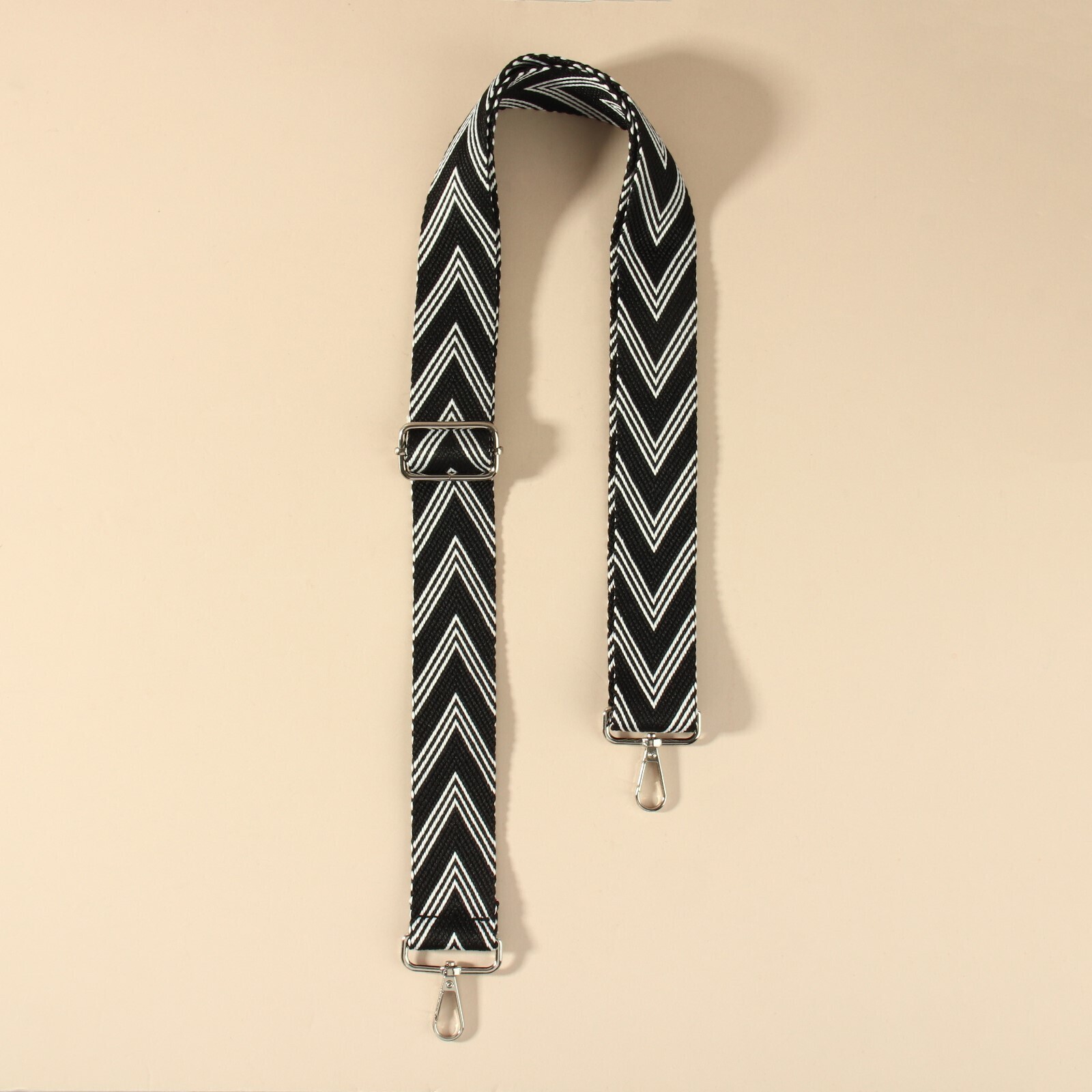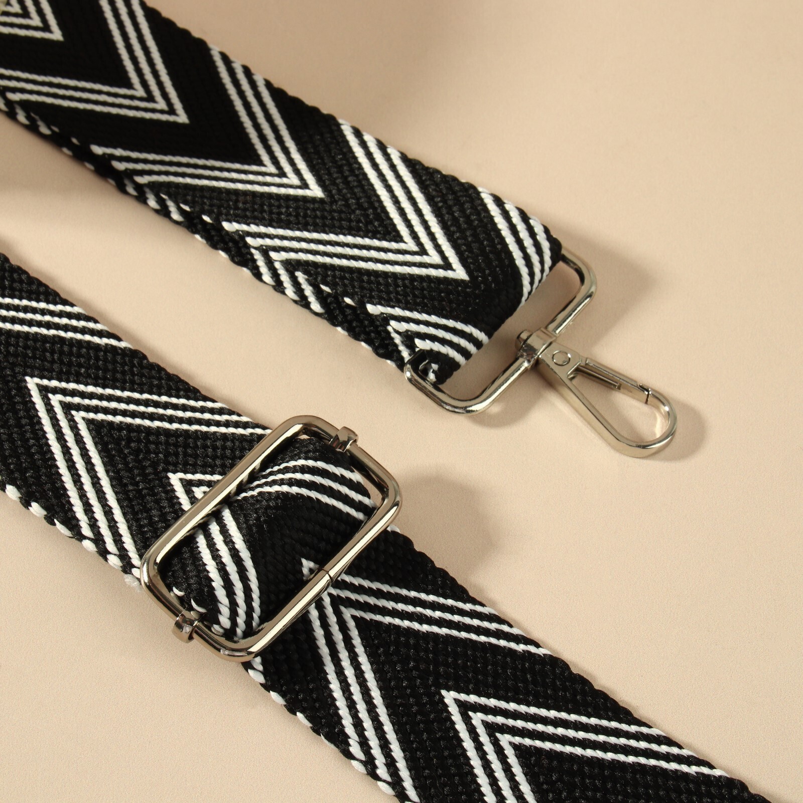 Ручка для сумки «Стрелки тройные», с карабинами, 139 ± 3 × 3,8 см, цвет чёрный/белый/серебряный