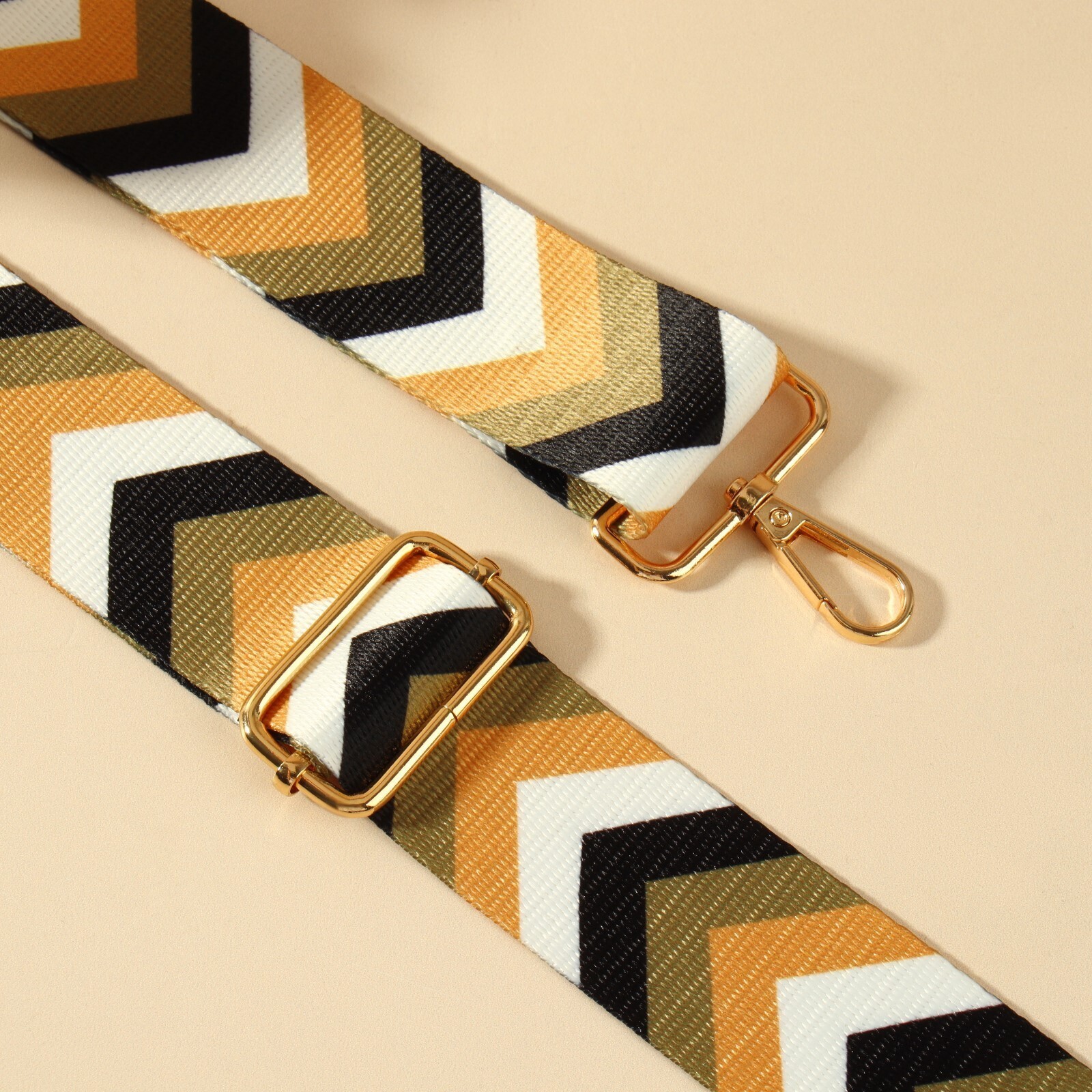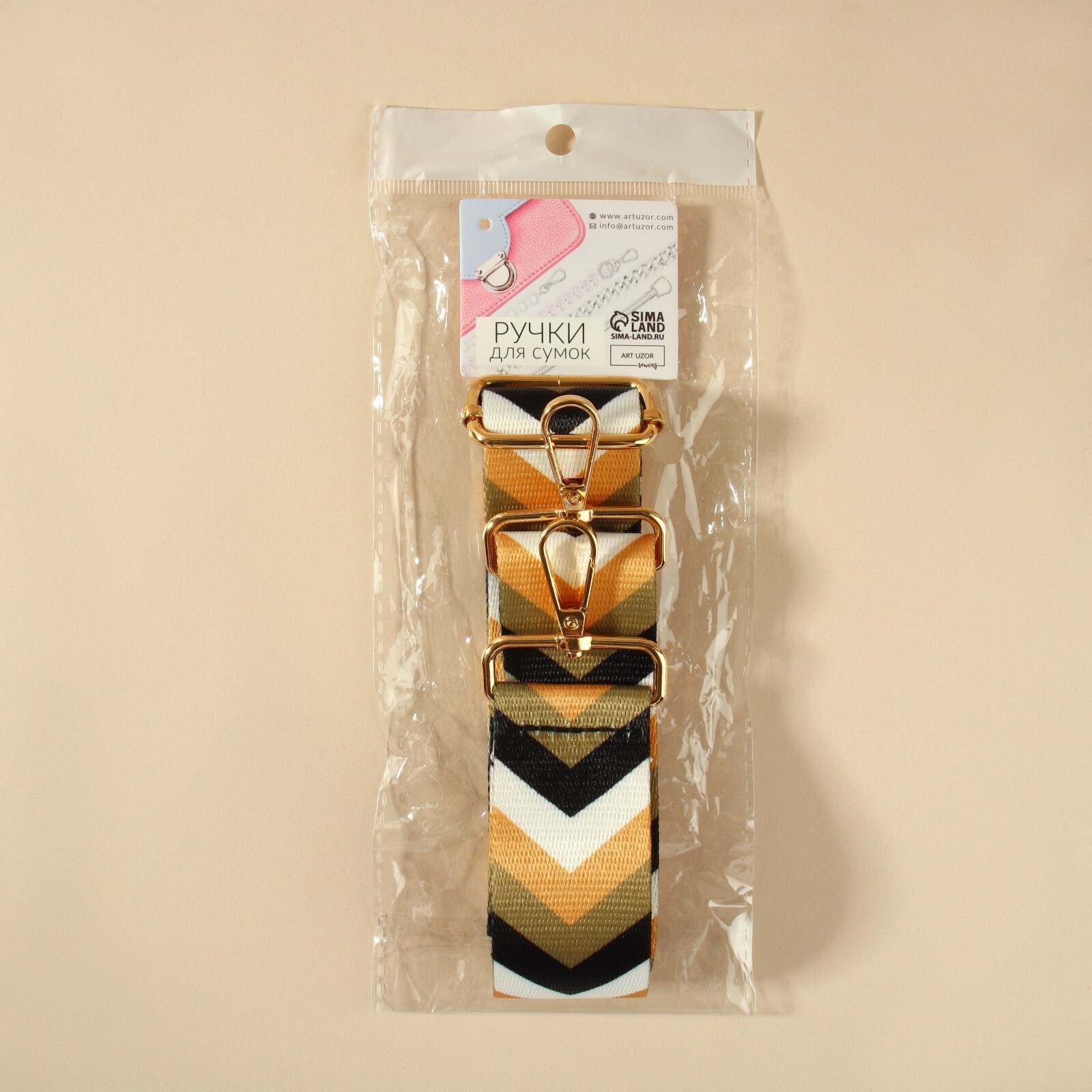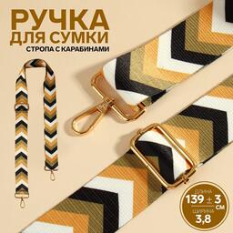 Ручка для сумки «Орнамент галки», стропа, с карабинами, 139 ± 3 × 3,8 см, цвет золотой