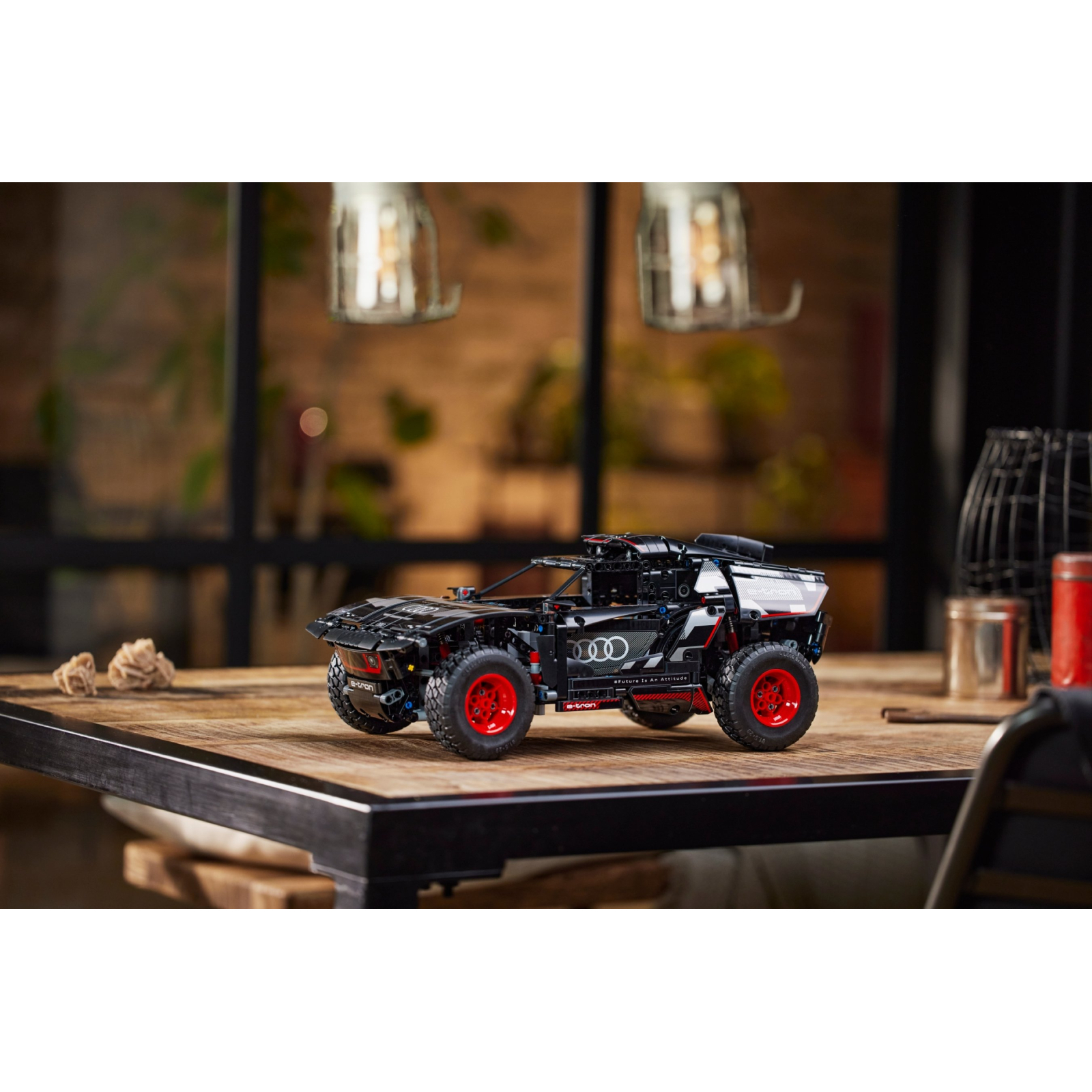 Діти, які обожнюють ралійні автомобілі, можуть випробувати свої навички, складаючи цю модель Audi RS Q e-tron 42160 з набору LEGO® Technic Audi RS Q e-tron. Складаючи, вони отримають уявлення про реальний електромобіль, який компанія Audi створила для пересування в суворих умовах пустелі під час Ралі Дакар. Ця модель має багато реалістичних деталей, як-от індивідуальна підвіска на кожному з чотирьох коліс автомобіля. Вона також має нову деталь колеса Technic, створену спеціально для цієї моделі, щоб відобразити повнорозмірний дизайн коліс Audi.