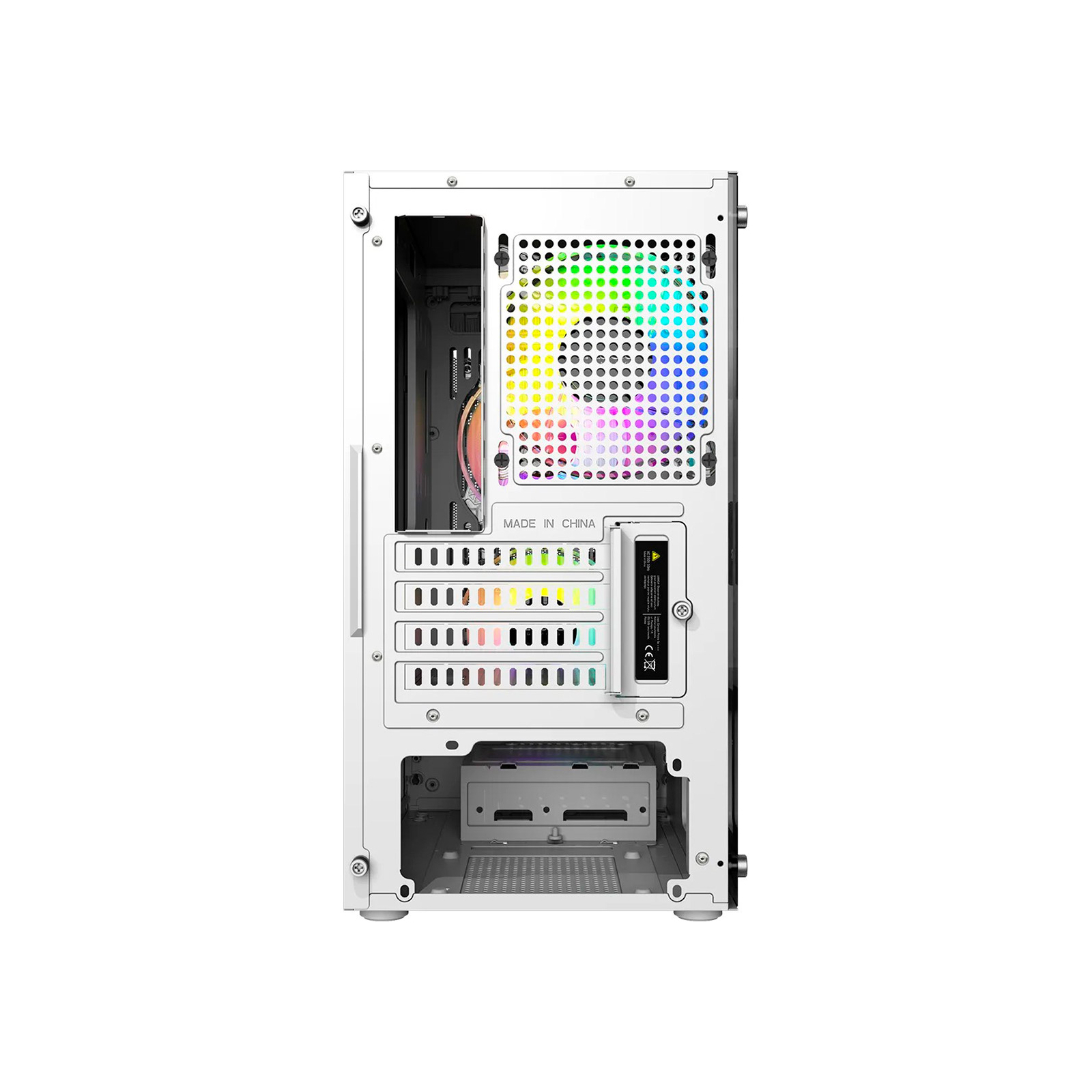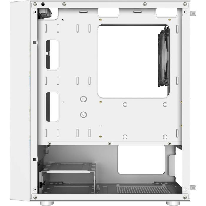 Бокова панель із загартованого скла відкриває чудовий огляд встановленої системи. Ваші ігри будуть ще динамічнішими завдяки A-RGB підсвічуванню вентиляторів, яке можна змінювати за допомогою кнопки Reset на панелі корпусу.
