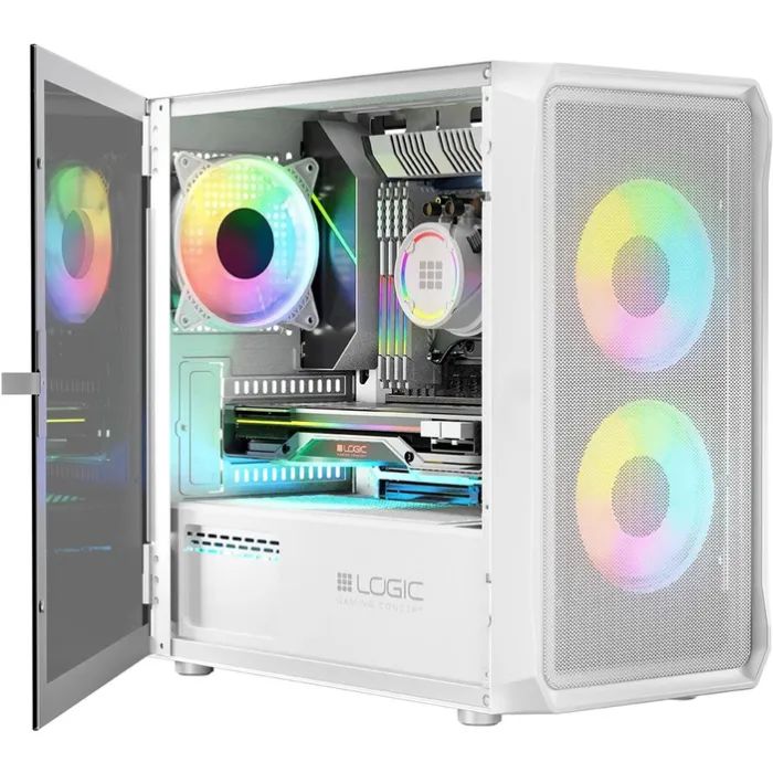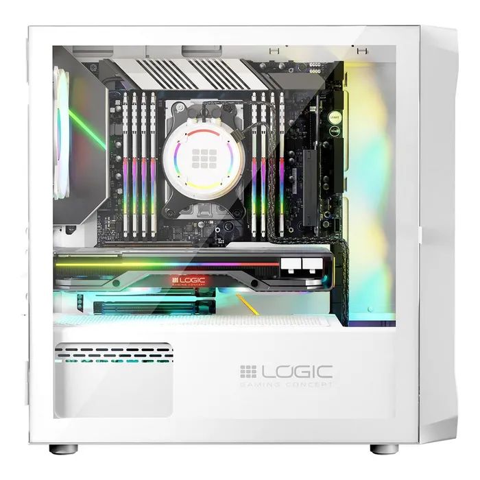 Фронтальна панель корпусу LogicConcept PORTOS виготовлена з сітки, що забезпечує кращий обіг повітря. Невеликі отвори на місці встановлення блоку живлення також покращують обіг повітря всередині корпусу та виконують роль пилових фільтрів. Бокова панель із загартованого скла відкриває чудовий огляд встановленої системи. Ваші ігри будуть ще динамічнішими завдяки A-RGB підсвічуванню вентиляторів, яке можна змінювати за допомогою кнопки управління на верхній панелі корпусу. Оптимізований механізм кріплення бокової панелі дозволяє легко її відкривати, що робить обслуговування системи надзвичайно простим.
