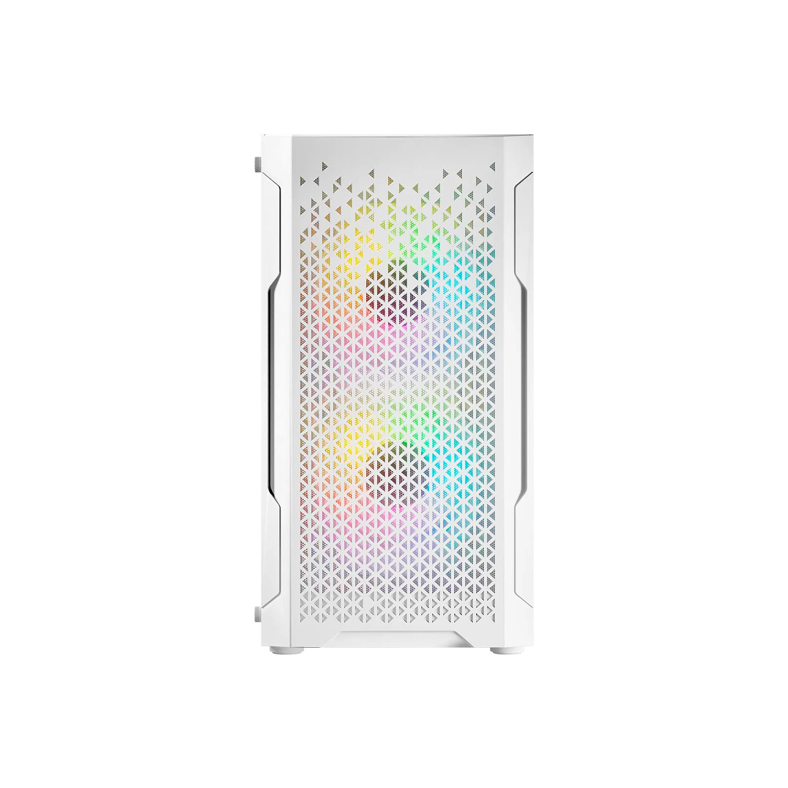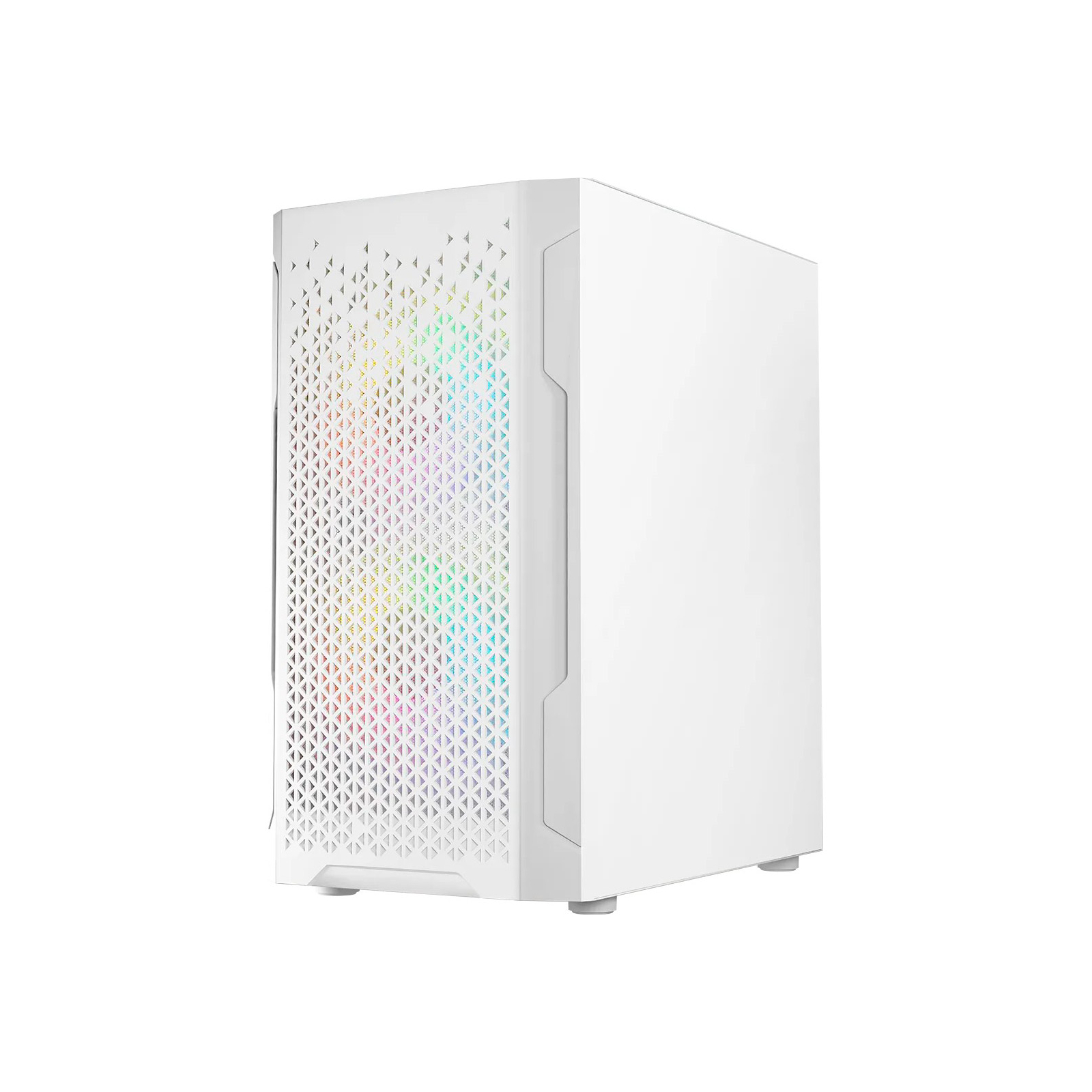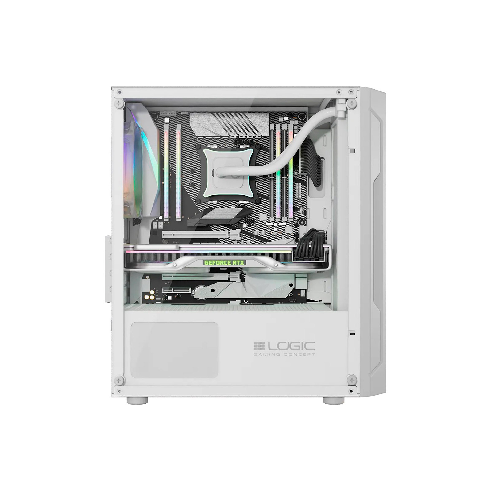 Фронтальна панель корпусу LogicConcept ARAMIS виготовлена з сітки, що забезпечує кращий обіг повітря. Невеликі отвори на місці встановлення блоку живлення також покращують обіг повітря всередині корпусу та виконують роль пилових фільтрів. Бокова панель із загартованого скла відкриває чудовий огляд встановленої системи. Ваші ігри будуть ще динамічнішими завдяки A-RGB підсвічуванню вентиляторів, яке можна змінювати за допомогою кнопки RESET на панелі корпусу.