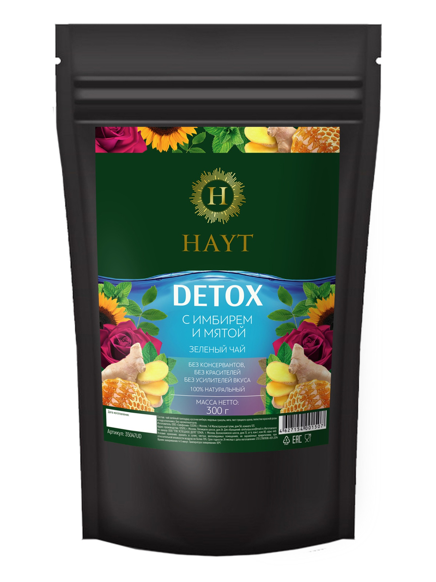 Чай DETOX зелёный листовой HAYT С Имбирем и Мятой 300г, Детокс