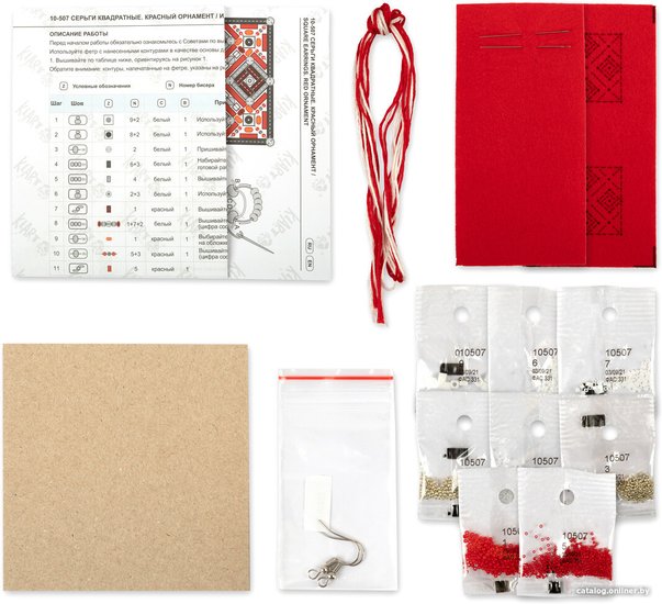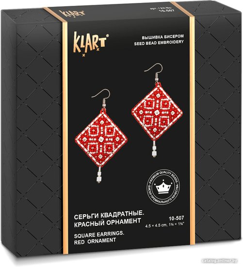 Серьги квадратные. Красный орнамент 10-507